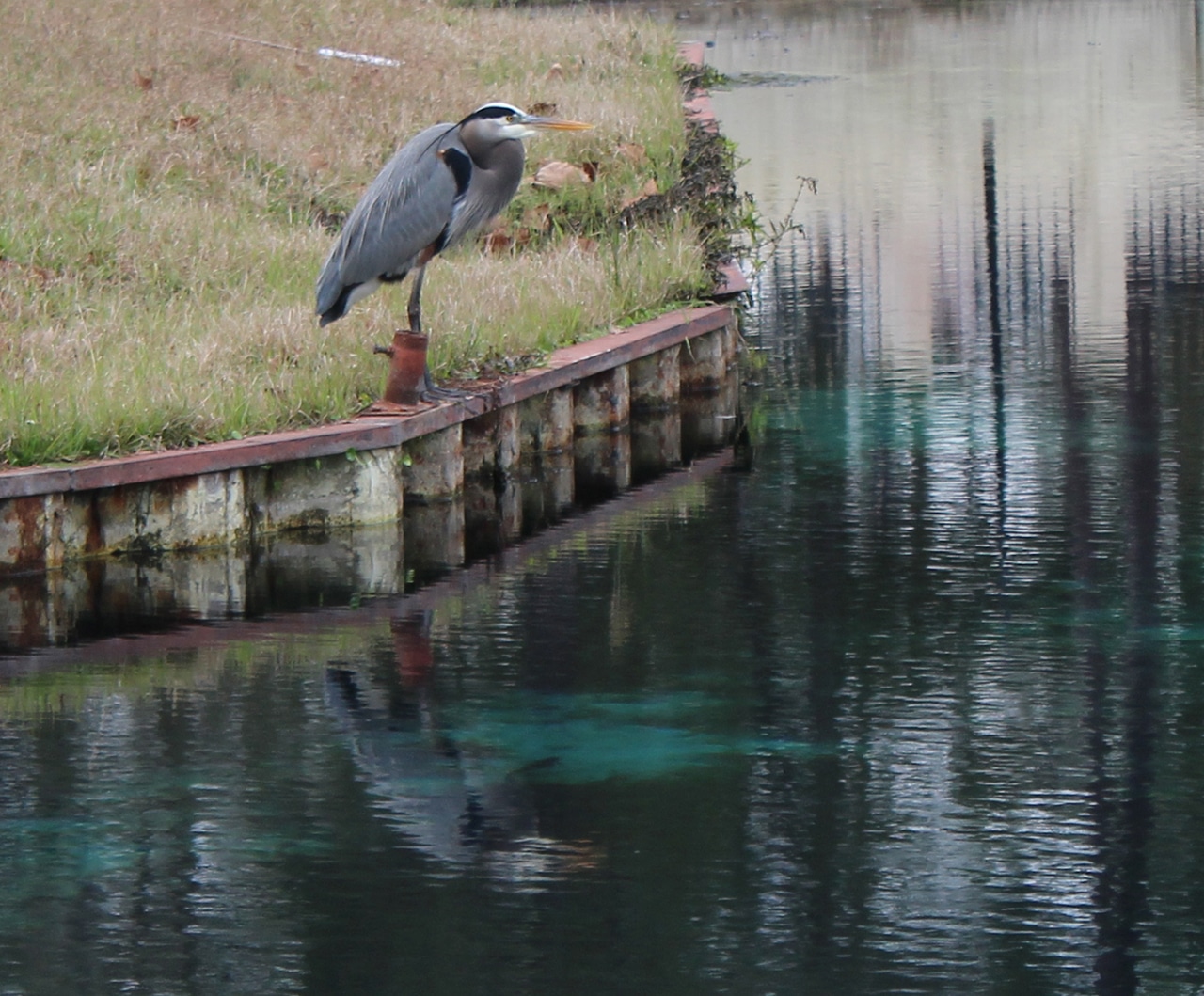 Another boardwalk lead us out to a floating dock. This spring is one of the most popular diving spots in northwest Florida and produces an estimated 48 million gallons of crystal clear water each day – and sometimes more! Since we were the only ones here, we enjoyed total silence and great reflections of the trees standing in the water.