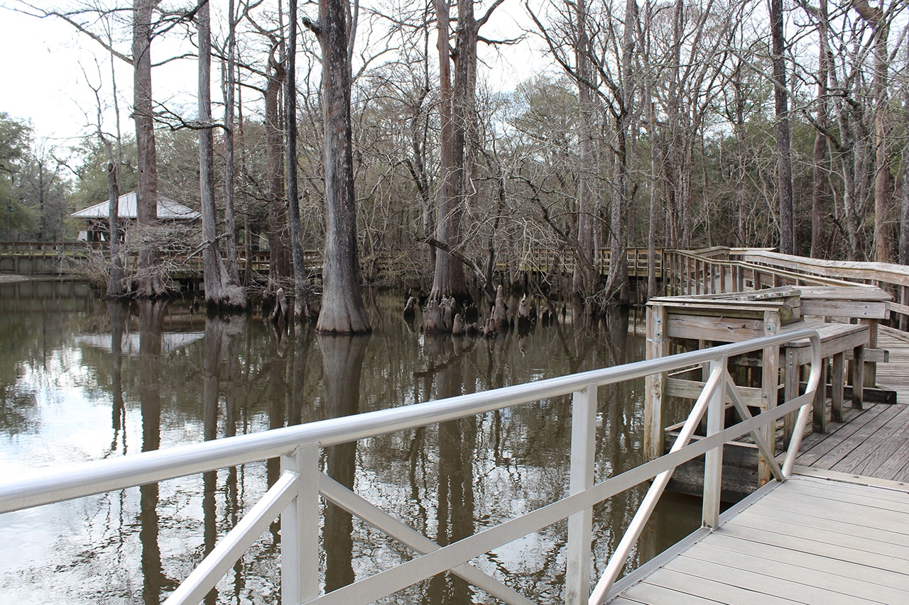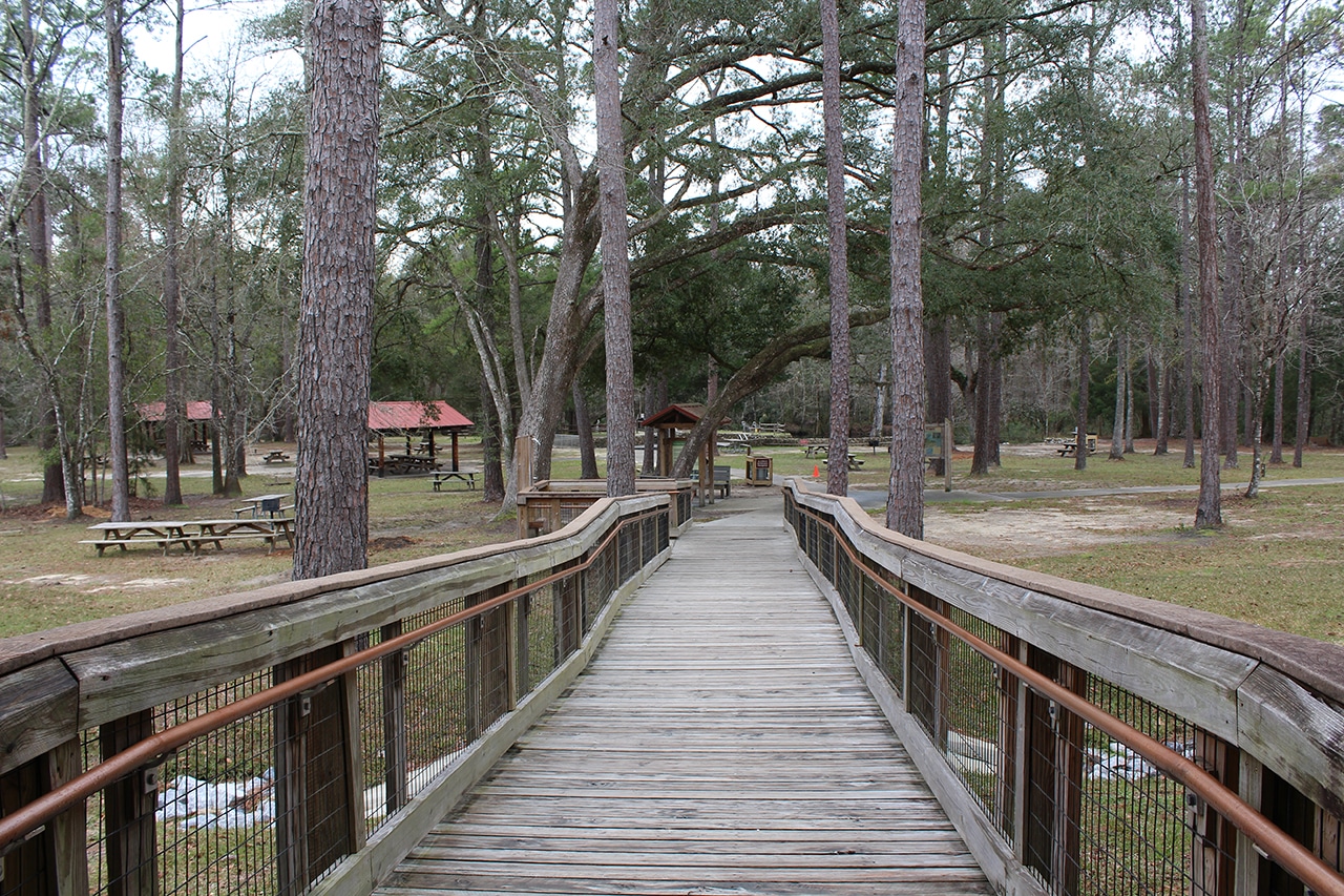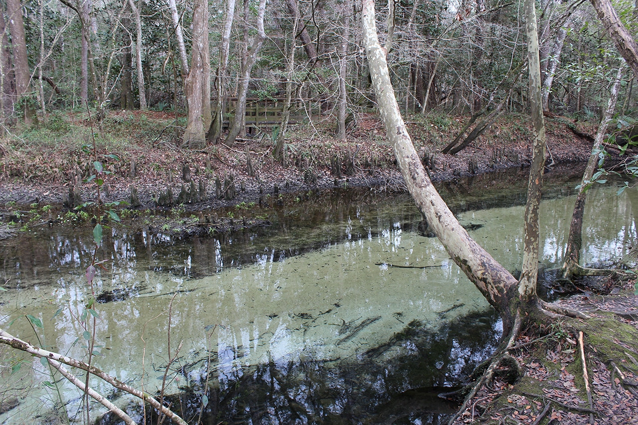 The overflow from the spring flows into a crystal clear river which merges downstream with Sandy Creek’s tea-colored water. A boardwalk took us over the river to a nice trail which lead us back into the woods. Rangers conduct guided walks during the warmer months.