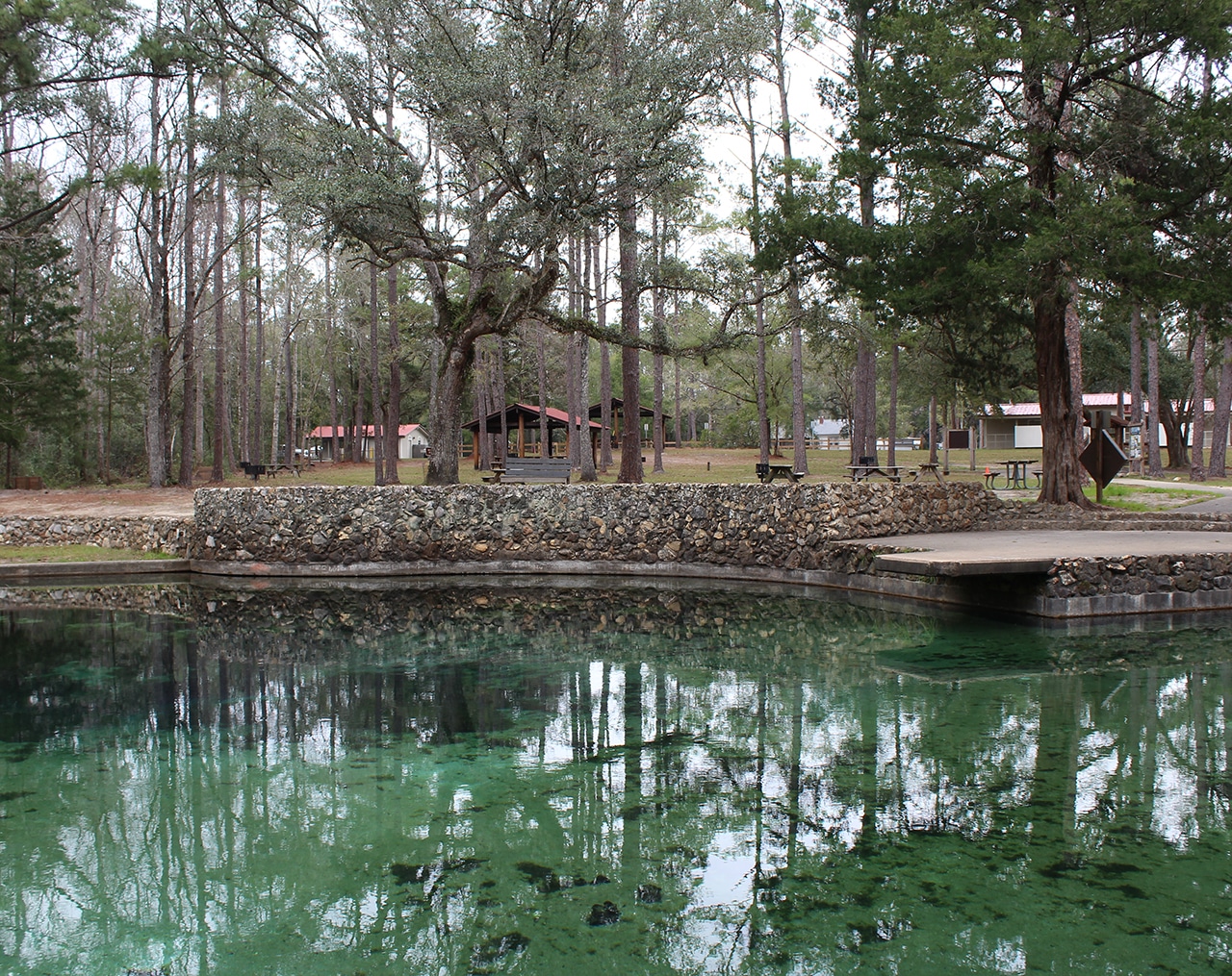 Vortex Spring is a little run down, but is undergoing some renovation. Take a look at their website and see a transformation, just by adding some sunshine and leaves on the trees! This would be a perfect destination for a party weekend (if we were in our twenties), or if we enjoyed scuba diving into caves – with a well-equipped dive shop, lots of waterslides into the crystal clear water, lounge chairs for relaxing, fire pits, campsites and cabins for rent.