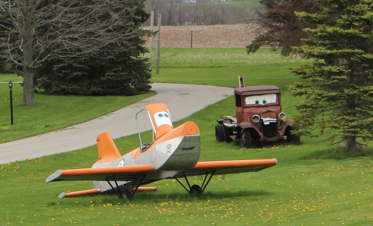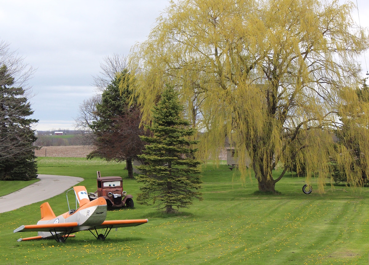 Dusty Crophopper (from Planes) and (Tow) Mater (from Cars) just crack me up and the Weeping Willow tree with the tire swing just feels like home.