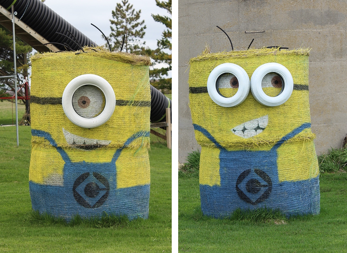 The last couple of years, one of the folks who live along this route has been adding fun features that also brighten our day. The addition of the two Minions was a wonderful surprise. Made of bales of hay, they joined the party right after the first movie came out.