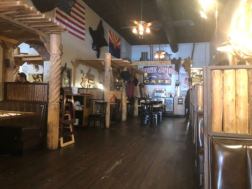 After that interesting (and cold) visit, we decided to warm up and have some breakfast in Prescott. Although the Lone Spur Cafe doesn’t look that busy in my photo, we had to wait a good twenty minutes to get a booth. Their French toast special at the link is SO GOOD and clearly they seated us in the appropriate booth!