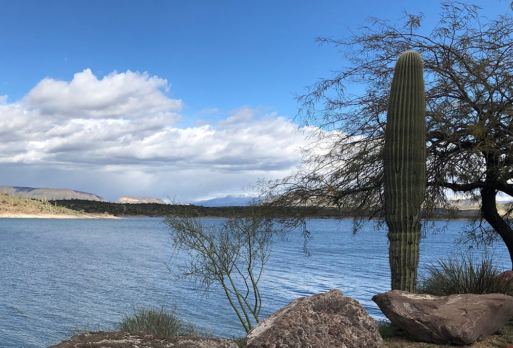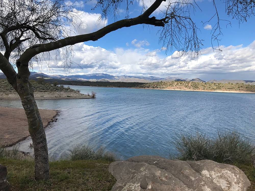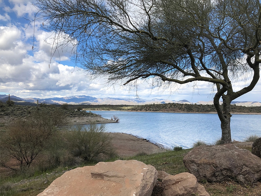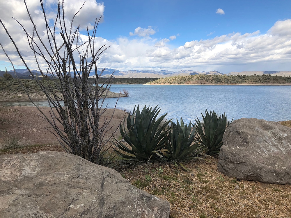 The first full day in a new place always means unpacking, organizing, and a grocery run. And today an oil change for our trusty vehicle was a must. The next day, after putting some chicken in the crock pot, we took a short road trip to Lake Pleasant. Even though the sun was shining brightly, it was a very cold day. Barely in the 40s, with that damn stiff wind again, we didn’t hang out for too long.