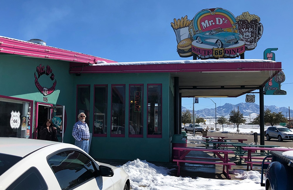 At the time of our last trip we were unaware that we had a high school friend living in Lake Havasu City. This time we made a point to meet up with her on our way through. Mr. D’s Route 66 Diner was recommended as a fun place right on the historic highway. Nancy didn’t seem to mind the hour drive (once the weather cleared), and we talked for hours about everything from our grandkids to our future plans. I can’t wait to meet up again sometime in the near future!