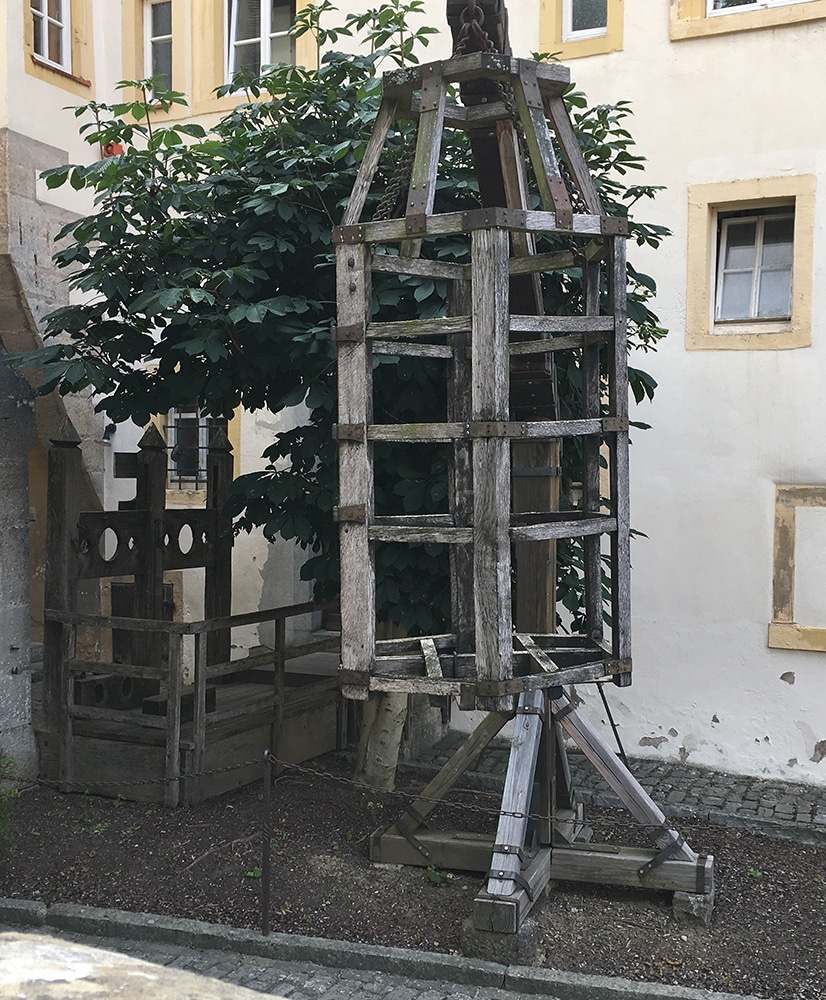 We had the option to check out the Medieval Crime Museum (pictured below). I can imagine it would have been interesting, with a “unique and comprehensive insight into 1000 years of legal history” – including numerous “instruments of torture, execution, masks of disgrace and throat vices.” One would wonder about the rehabilitation percentages with such devices – or I guess I should say – the survival rates. We chose instead to continue our walk along this beautiful street called the Burggasse.