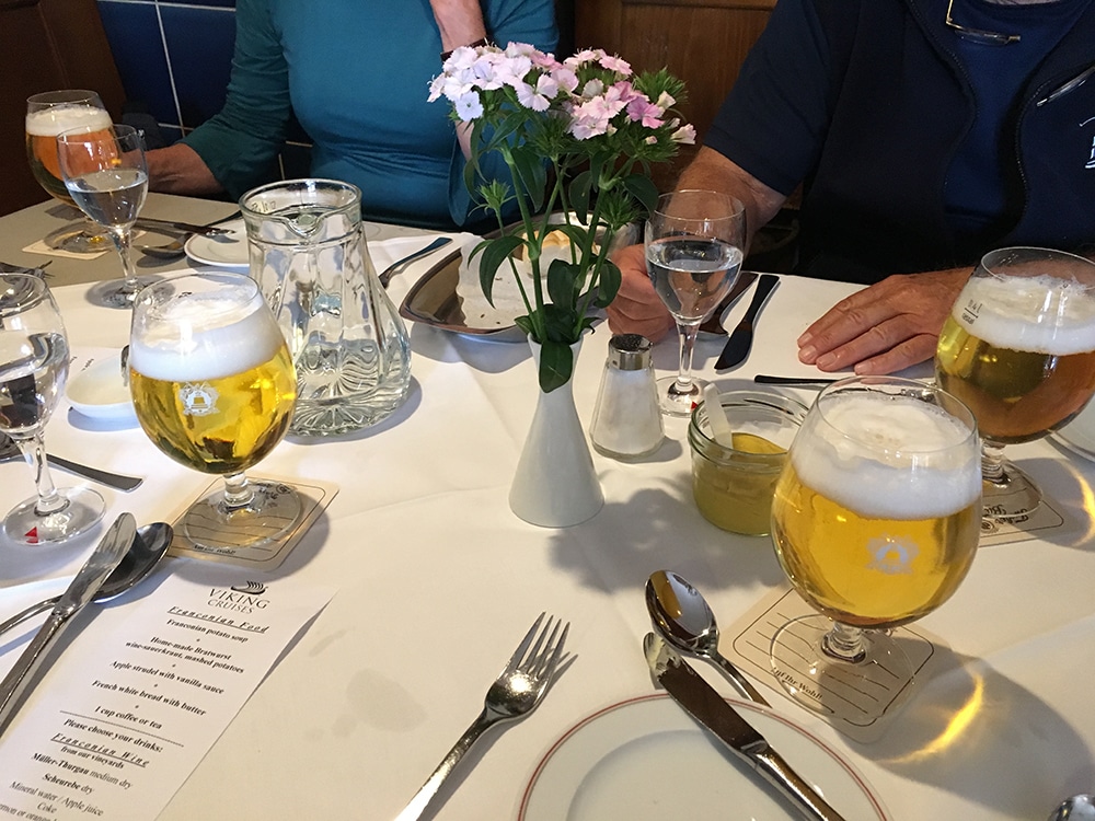 Ah, it’s finally lunch time! A person gets a little hungry when we’re doing a LOT of walking and we’re used to being fed regularly! Today we joined our shipmates who were also on this excursion at Gasthof Glocke for some lunch and (of course) beer. We had a wonderful conversation with a couple that we hadn’t met yet, so it was pleasant indeed!