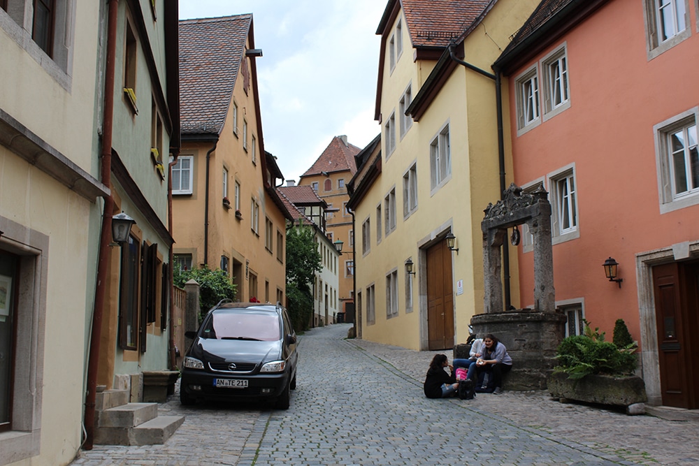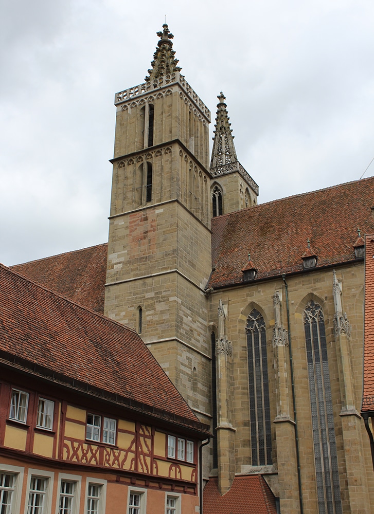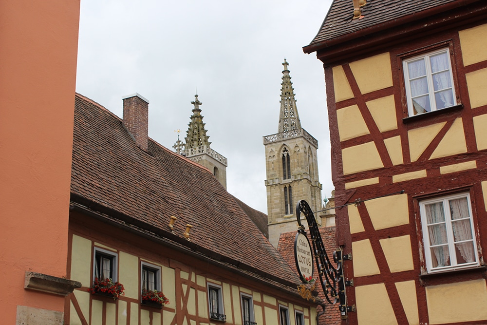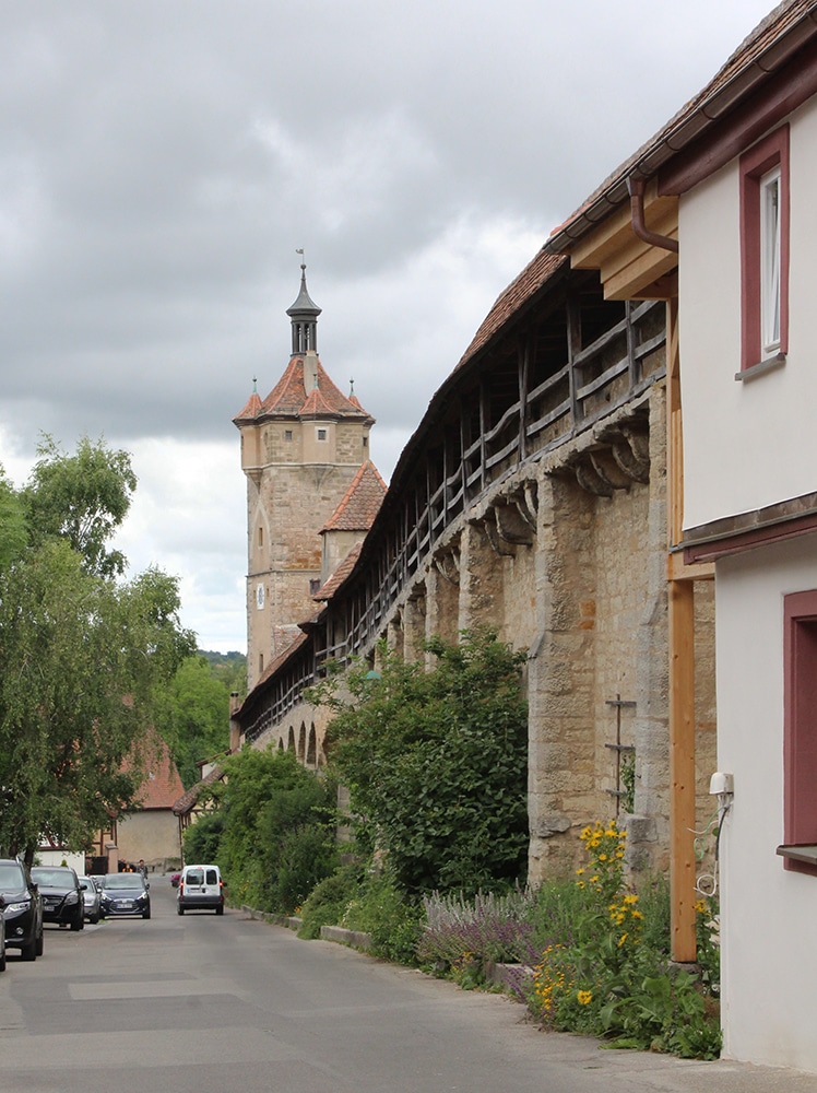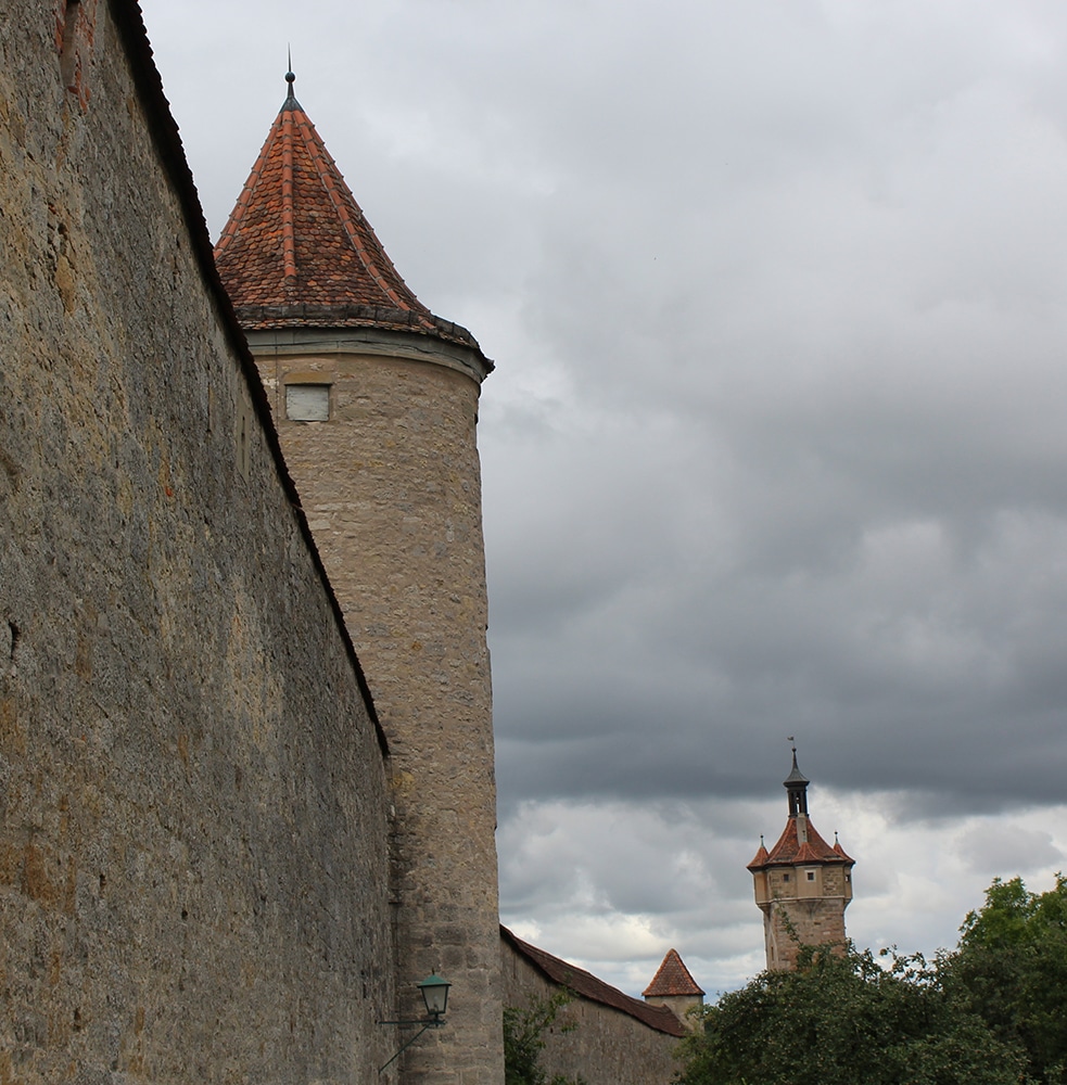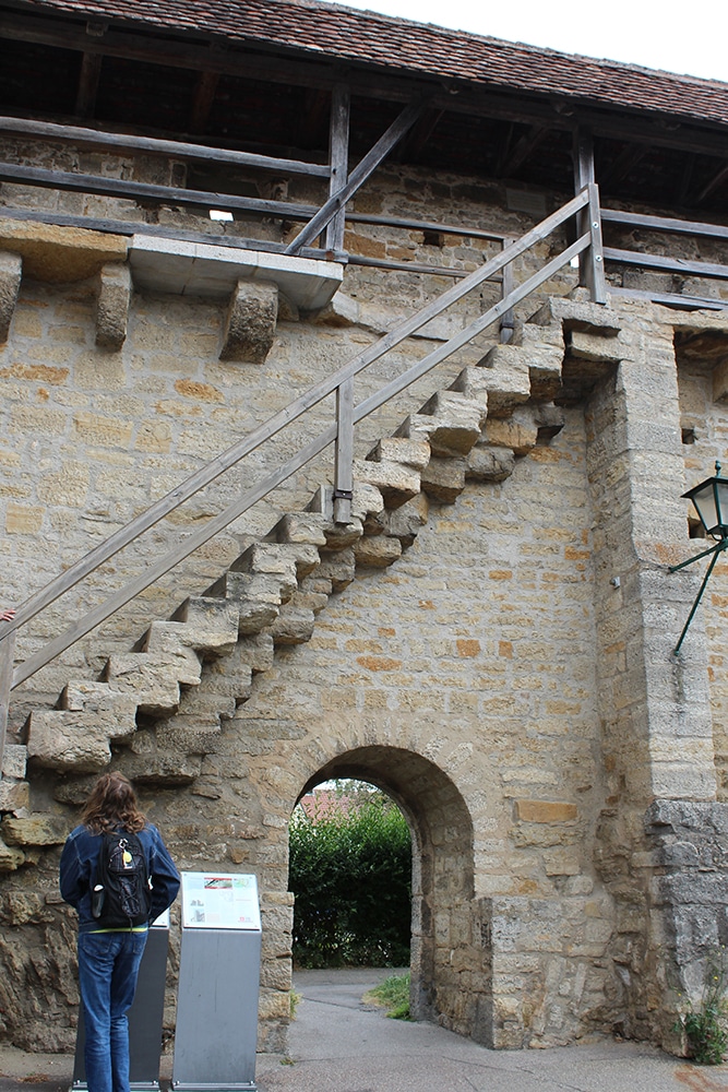 The stairs in the photo below – as well as more at each tower – lead to the top of the wall where you can walk all the way around Rothenburg via the wall that encircles it. Although we didn’t partake on this almost three-mile trek, doing so would offer a birds-eye view of the architecture of the middle ages – and more exercise.