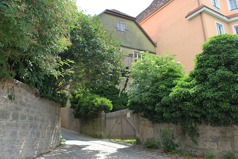 “The Little Square is a fork in the road and a former fish emporium overlooking Sieberstor and Kobolzellertor in Rothenburg ob der Tauber. Because of its beauty and romance, it is one of the best places for postcard designs and pictures. Surrounded by half-timbered houses and overlooking the White Tower it is a wonderful nostalgic experience in this delightful ensemble. The word originates from the Latin Plönlein of “planum”, which means “flat place”. Both gate towers were built in the first expansion of the city in 1204. The Kobolzeller Tower [on the right down the hill] secured the entrance to the city from the Tauber Valley. The Siebers tower [left] which was reinforced with rough quarried stone formed the southern portal to the 14th Century, and the hospital district was included in the city’s fortifications.” – MORE POINTS OF INTEREST