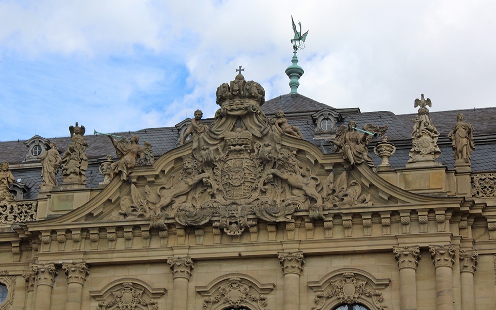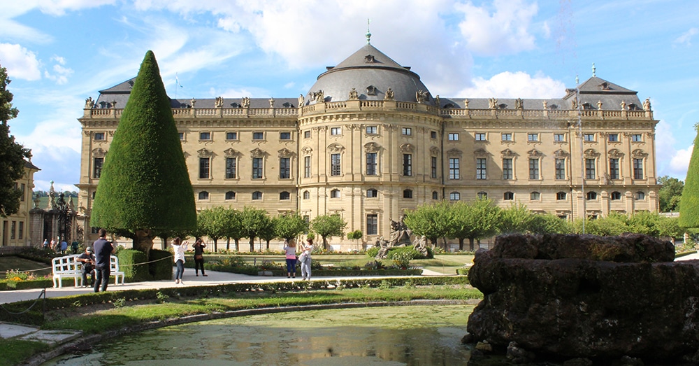 After a wonderful day behind the wall, we head back to Würzburg for our tour of the Bishops’ Residenz – the upgrade I was referring to in the breakfast photo at the start of this post. When the prince-bishop got tired of the palace in that photo, he built this one. Our tour information describes this Residenz as “one of Germany’s largest and most ornate baroque palaces”.