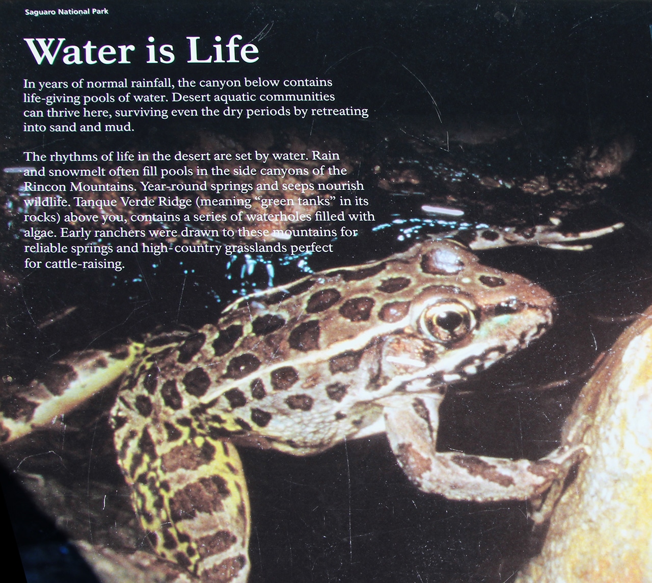 “The saguaro cactus forest around you owes its existence to the foresight of local residents. In the 1920s grazing and development threatened the saguaro’s future. Saguaro forests began to disappear as mature cactuses were chopped to make way for new roads. Livestock added to the damage as cattle trampled seedlings. Fearing the destruction of the southwest’s saguaro forests Homer Shantz led the effort that created Saguaro National Park – protecting the giant saguaro for generations to come.” ~ Another sign near the entrance.
