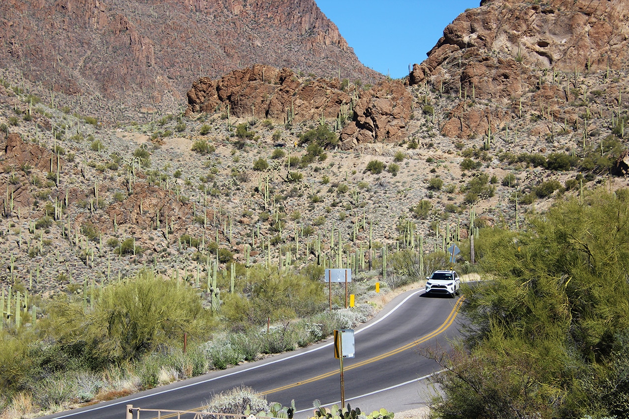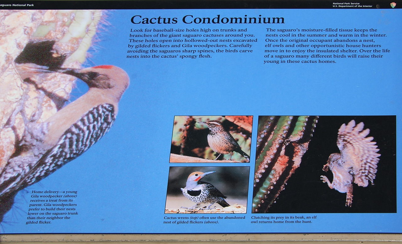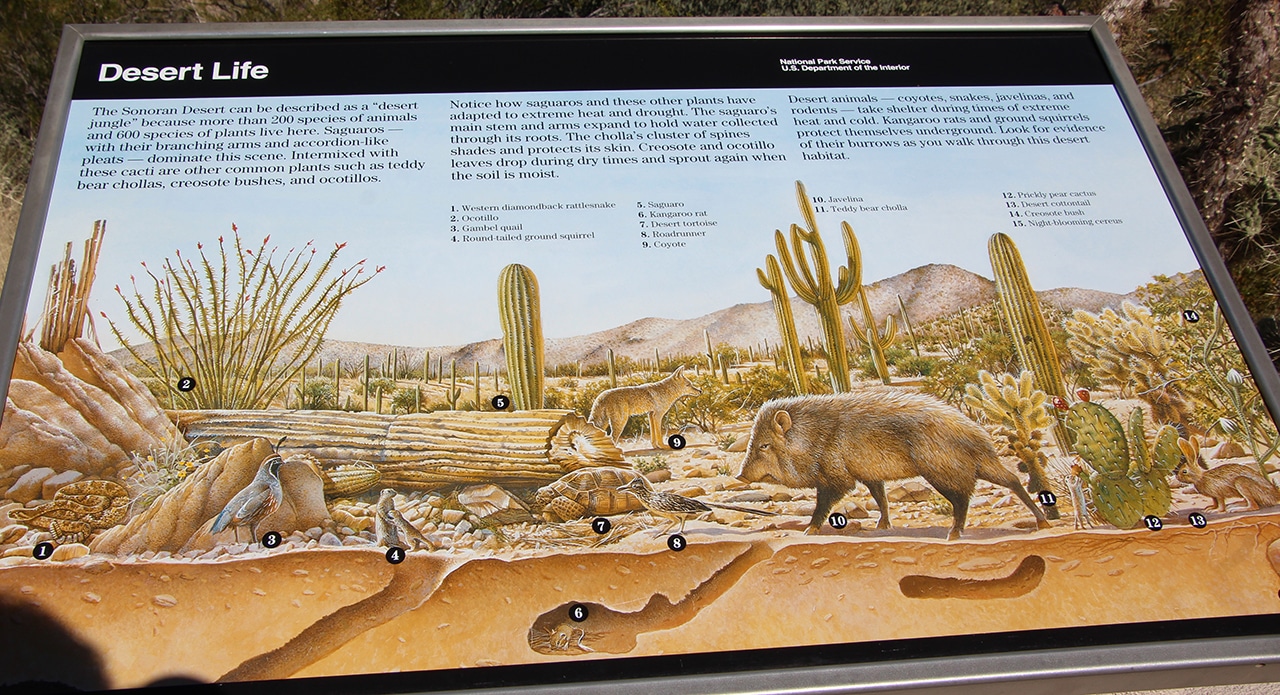 Since we do not consider ourselves “hardy hikers”, we opted for the Cactus Forest Drive. This eight-mile, one-way loop is paved and has plenty of parking areas along the way to stop and check out the views. The signage at these areas is very interesting and offers great insight into desert life. Depending on how much you stop (and we stopped a lot!) it can take a while to see these eight miles!
