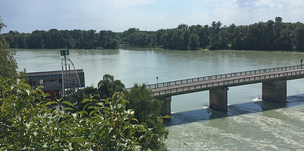 If you continue straight after leaving the Mariensteg, you would end up in a nature preserve with a bike/pedestrian path that follows the banks of the Inn River for a while. Our boat was docked just to the left of the bridge and we could see folks on their afternoon jog as we meandered down the river.