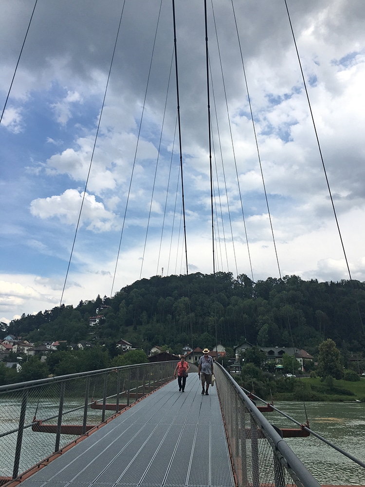 The green sign below “Mariensteg” refers to the suspension bridge across the Inn, which allows pedestrians and bicyclists (radfahrer) to cross. It was pretty awesome and it took a while to cross the emerald green waters of the Inn because it was so beautiful. My photo doesn’t really do it justice, so click on the link for some better photos and other specs if they interest you.