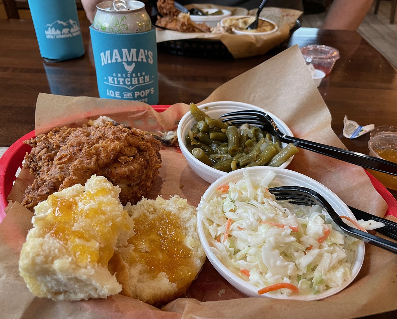After a hotel overnight, our first stop of this road trip was a stay at our friends’ house in North Carolina. They gave us a heads-up that they were both feeling a little icky and long story short, we ordered up two nights in Gatlinburg, TN to give them more time to recuperate. It worked out nicely since MountainLoft is one of our favorite stops in the Smoky Mountains, and near my cousin’s hometown so we could meet up for lunch on our way by.