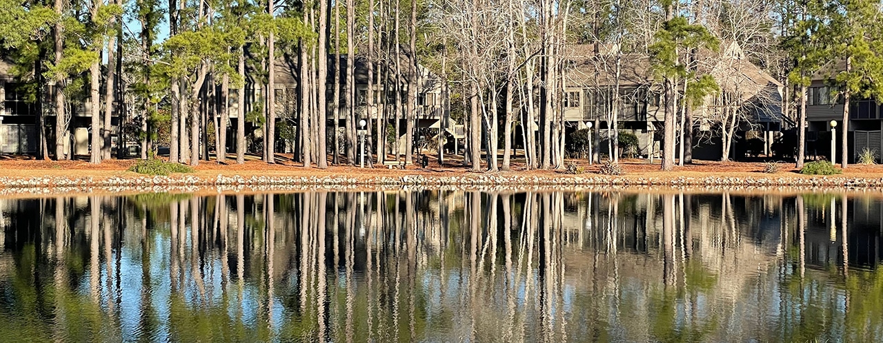 Our location did have one redeeming quality – the pond outside our unit was beautiful and offered awesome reflections on its still water. In the early evening, it was particularly impressive and ducks and geese seemed to enjoy that time of day as much as I did. As hard as I tried, I could not get a good picture of them, since as I slowly moved forward – they slowly moved away. My zoom lens got a good workout and the results were not good on the waterfowl shots.
