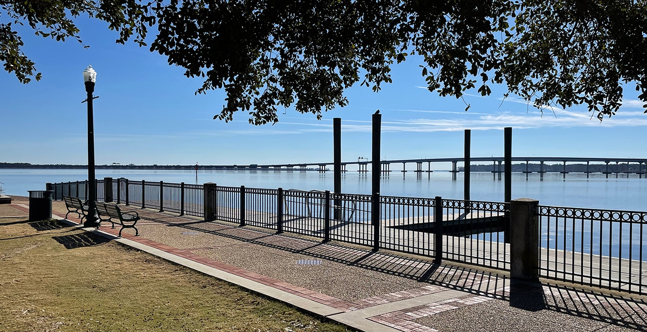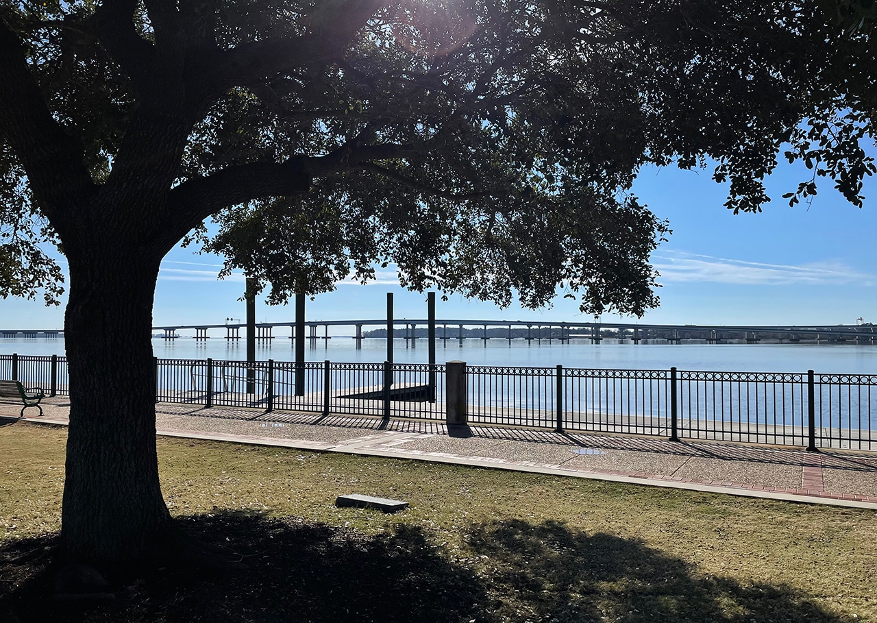 What a difference a day makes! The gazebo and waterfront photos were taken at Union Point Park. This six-acre park is located at the confluence of the Neuse (noose) and Trent Rivers, which makes for a beautiful view of the Neuse River Bridge. We ended up on that bridge every time we left our condo, and it was tricky to navigate at first with on- and off-ramps galore. Click on the link to see a great arial view of the bridge.