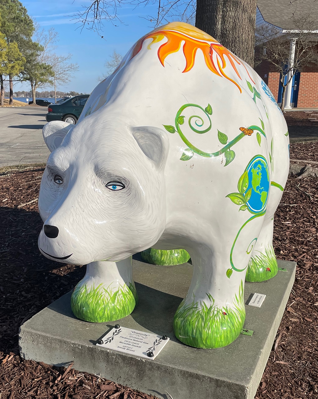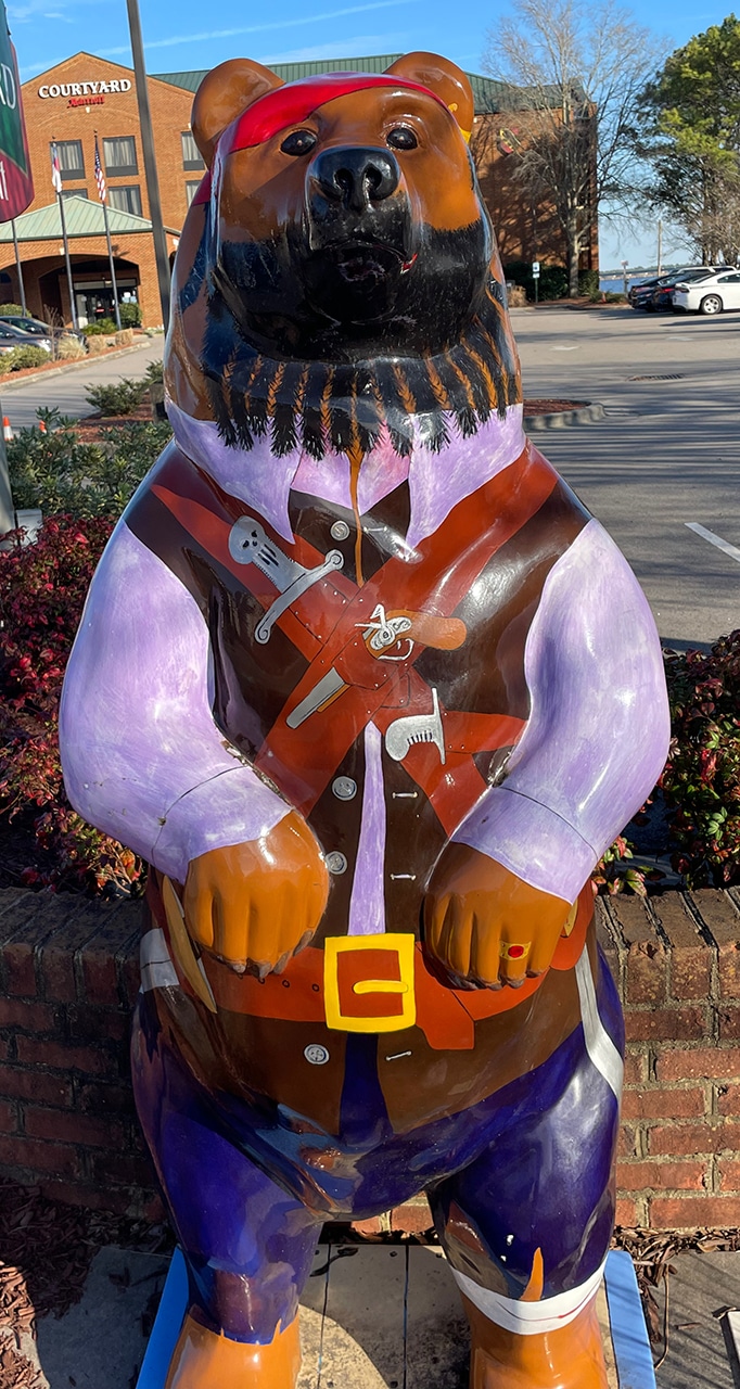 Below are “Bearon de Graffenried” (founder of historic New Bern) and “Greenzly”, both located at Union Point Park. “Captain Black Bear’d” is located in front of the Courtyard by Marriott just down the street.