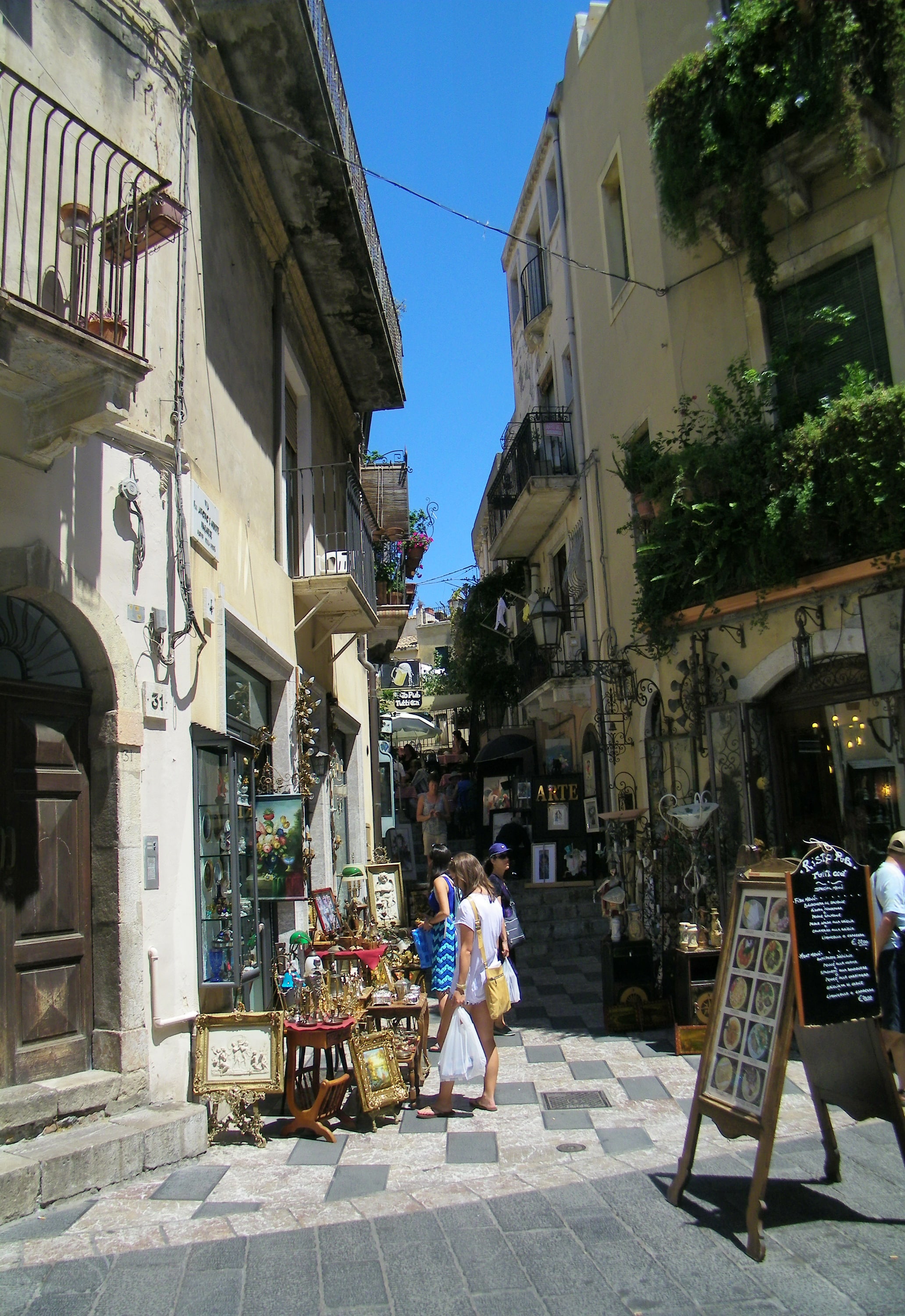 Then we were left with time (not enough) to explore (and shop) in the quaint little town of Taormina, with its winding streets and tiny passages. We met up with our tour guide at the fountain and headed back to the ship.