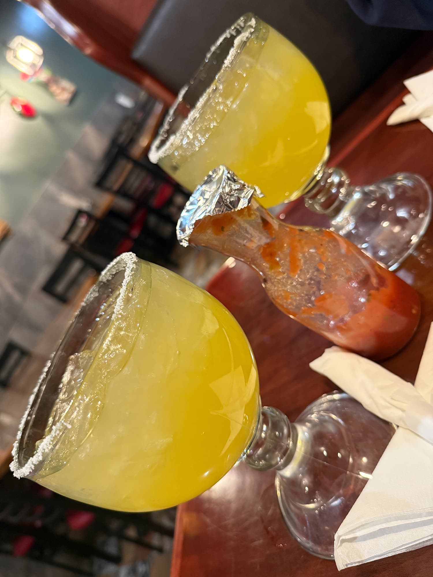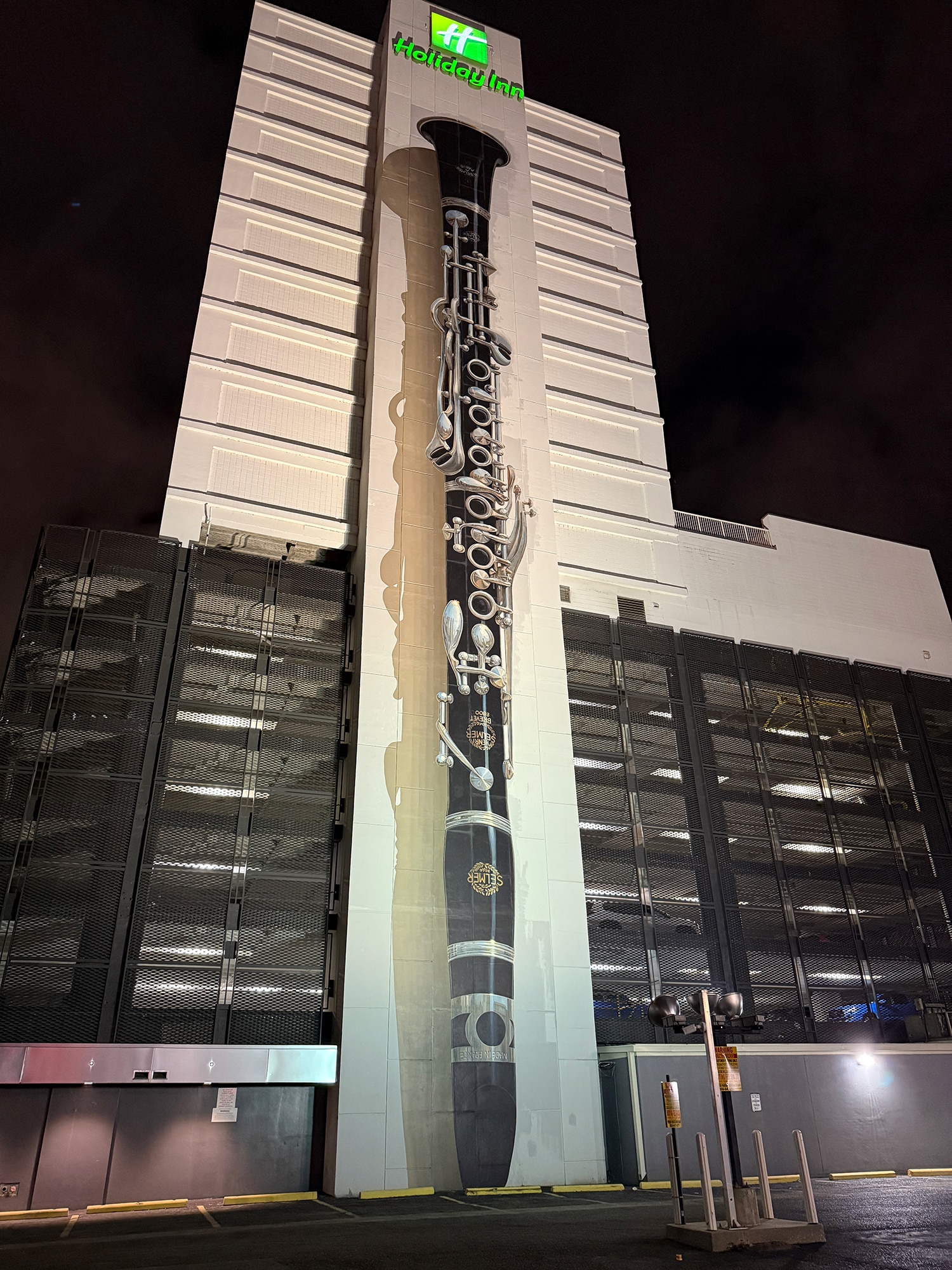 Although there was a nip in the air on our way home, once we got moving it was nice to be mobile again. The orange lights at Head Quarters were gorgeous and on any other night we may have stopped, but today was a long day. The towering clarinet on the side of the Holiday Inn was pretty cool to signify the Clarinet Bistreaux (coffee shop) located there. That picture made its way to my grandkids who both play the clarinet in middle school!