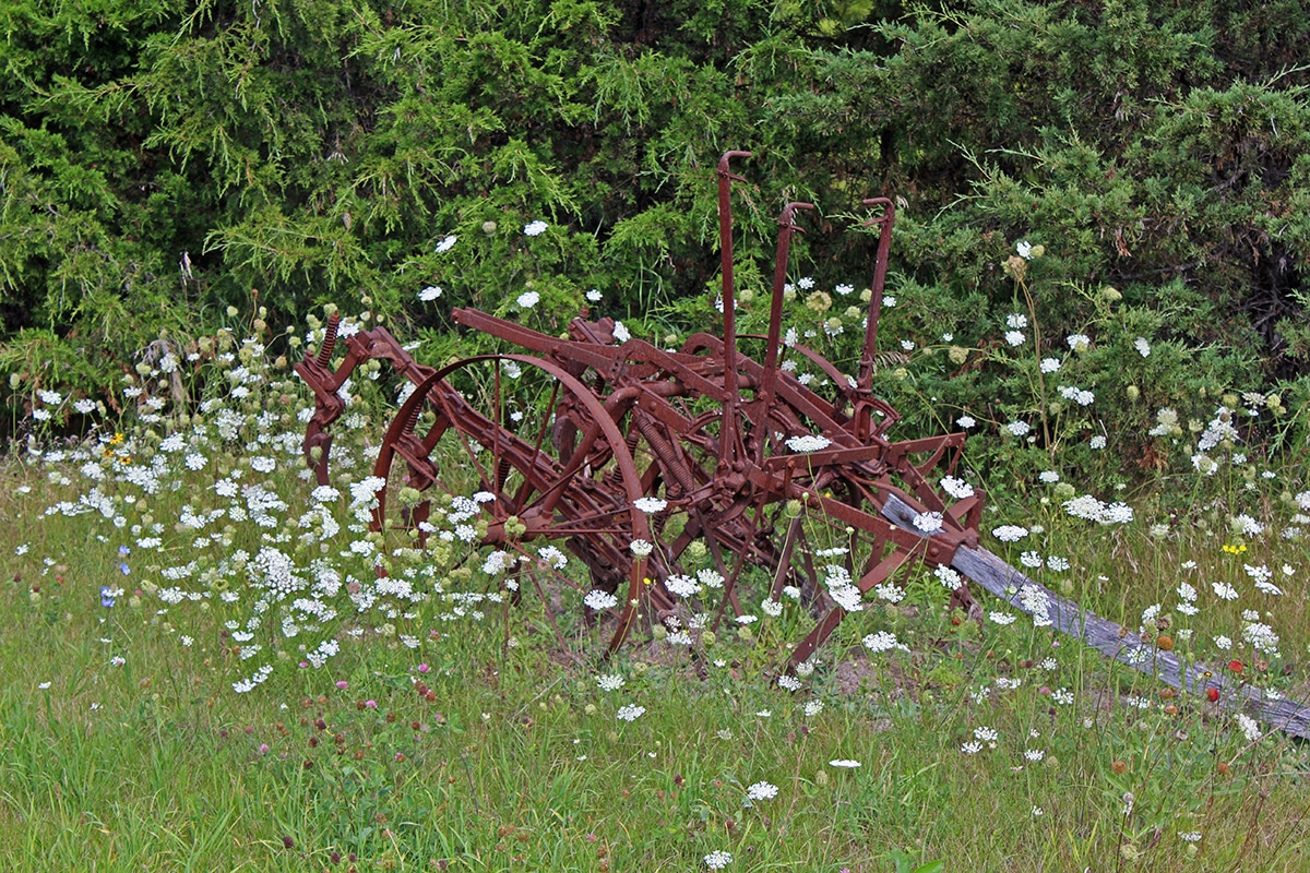 The picture above left was one of a dozen rusty old farm implements along a county road. I thought they fit in nicely with the weeds that engulfed them and the farm theme of today.