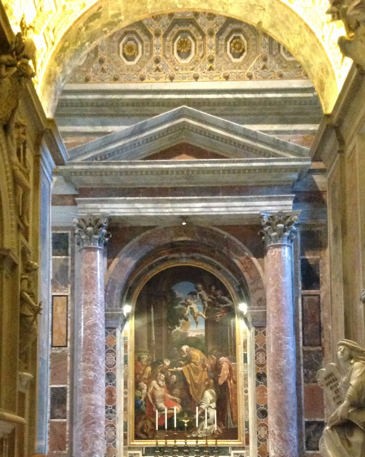 I wish I had a better picture of the baldacchino (above, center) because it was stunning. Visit this site for a photo of the baldacchino. More info follows.