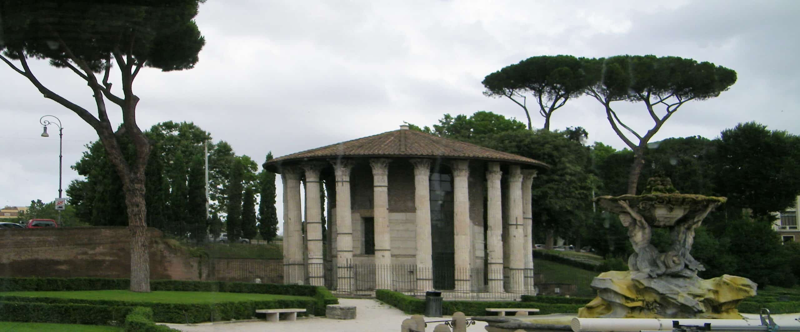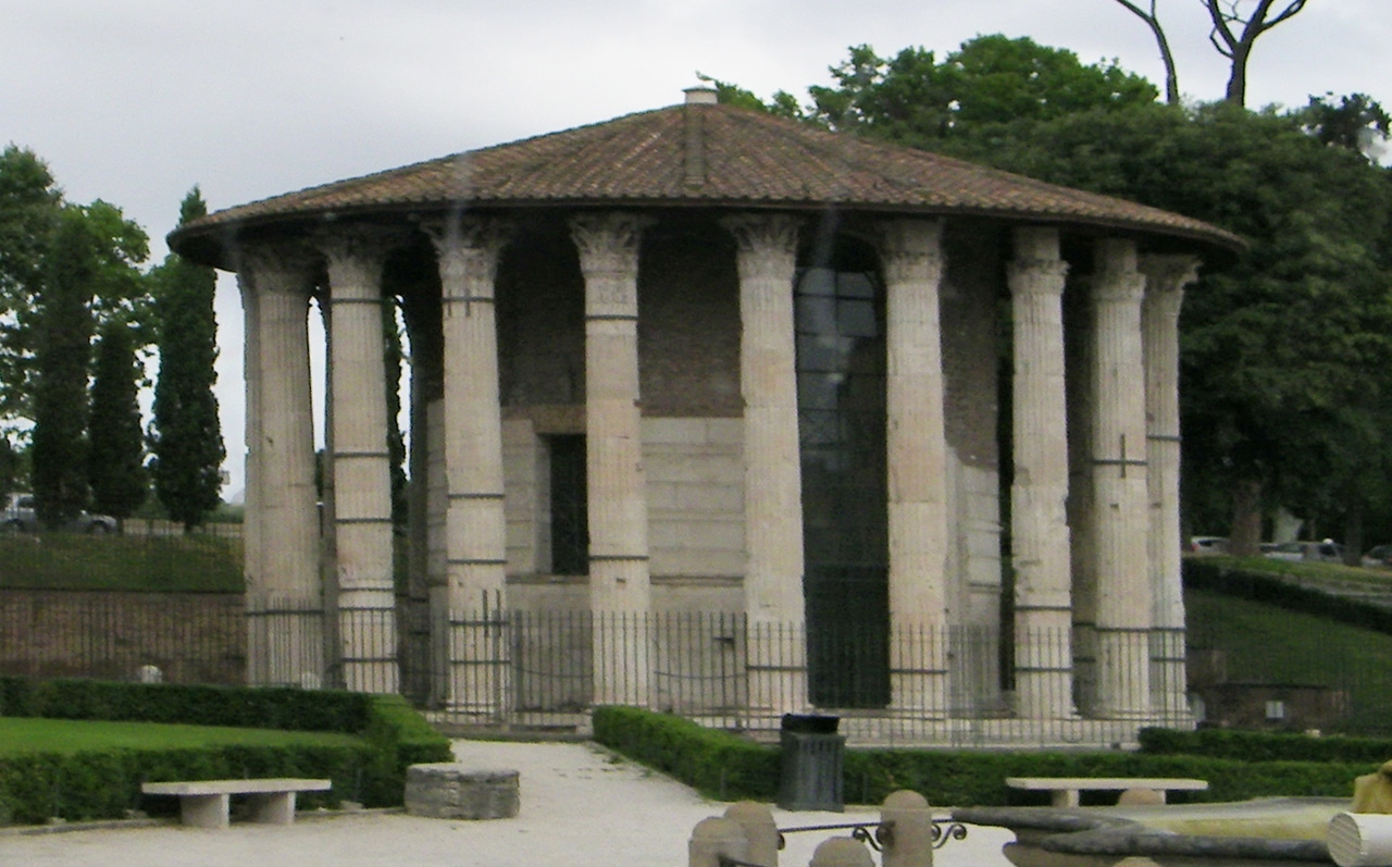 “The temple is best described as a colonnade of twenty Corinthian-style columns arranged in a circle around an inner chamber. Inside was a statue of the god Hercules, as old as the temple itself, created by the renowned Greek sculptor Scopas the Younger. The temple is often incorrectly identified as the Temple of Vesta, after the circular temple at the Roman Forum. The temple of Hercules is remarkably well preserved, especially for what is considered the oldest marble temple in Rome.” – READ MORE