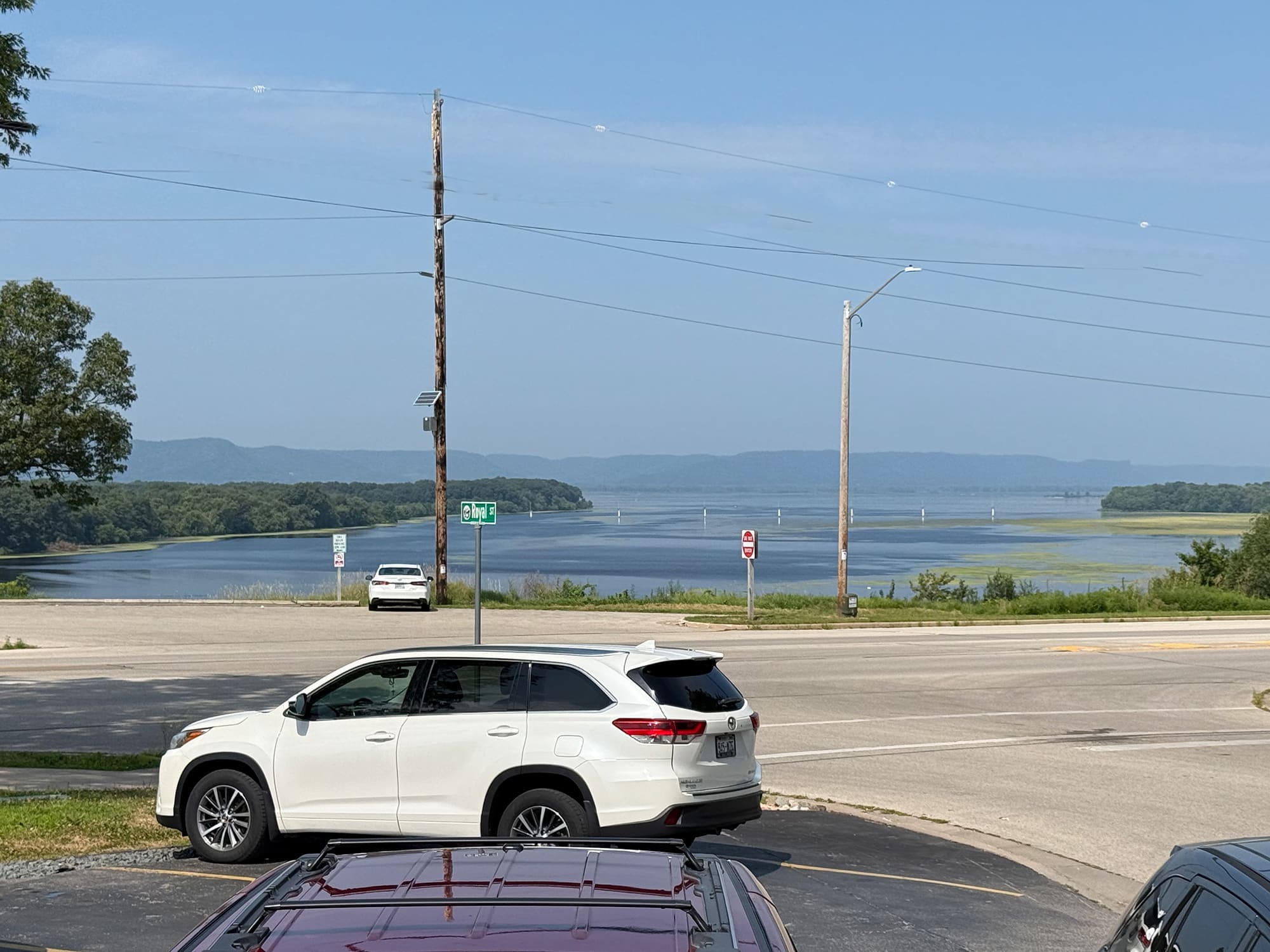 On our last day in La Crosse we took a short trip to Onalaska for a great breakfast, a visit with Sunny, and some beautiful lake and river overlooks. Breakfast was so good that we stopped again the next day, then continued on with a walk to three (of seven) bridges and a wine tasting on the way to our next destination. Ahh, I love vacations!