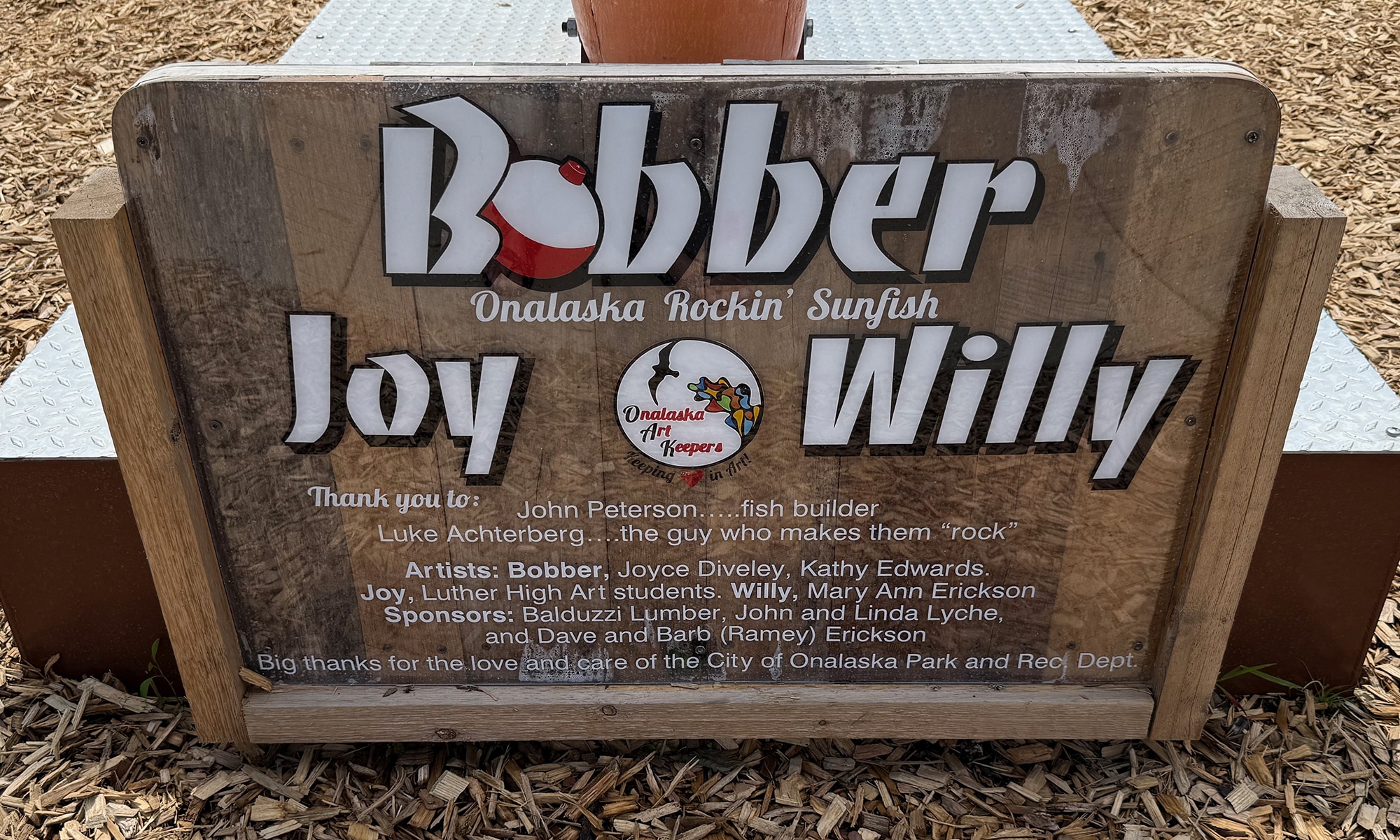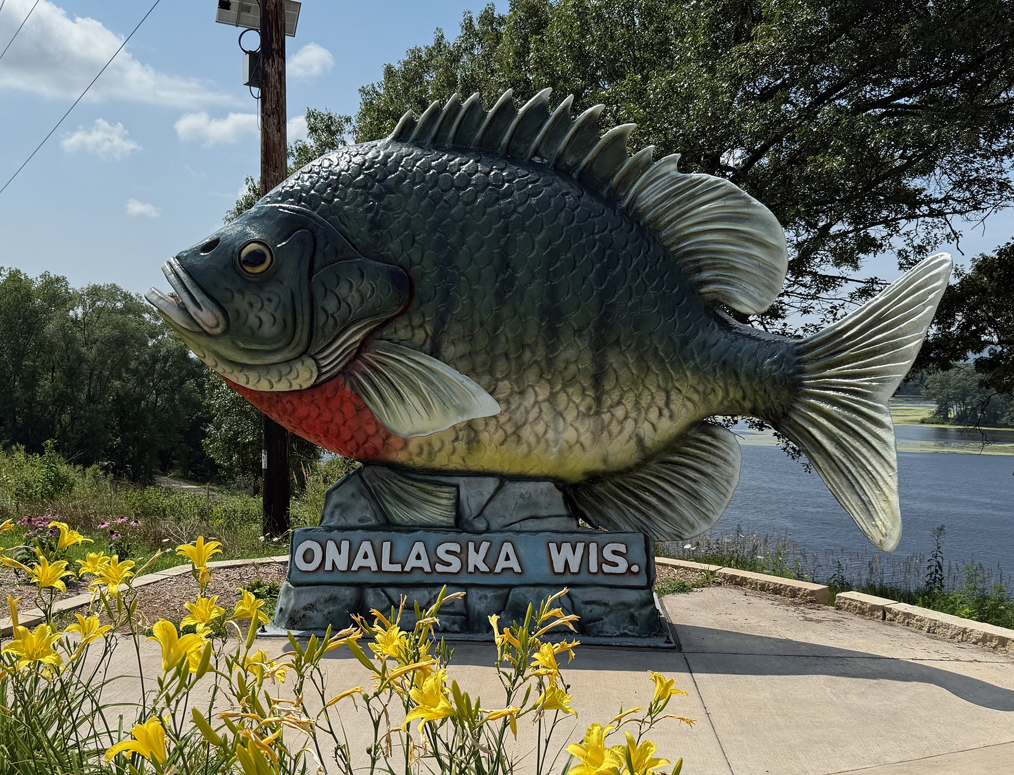When I googled the city of Onalaska and discovered its apparent worldwide distinction as the “Sunfish Capital of the World”, I was so excited that we happened upon Sunny – the 15 feet high, 25 feet long ambassador of Onalaska. The best part was that he was stationed just across the road from the Blue Moon with much better views than from the deck over the parking lot!