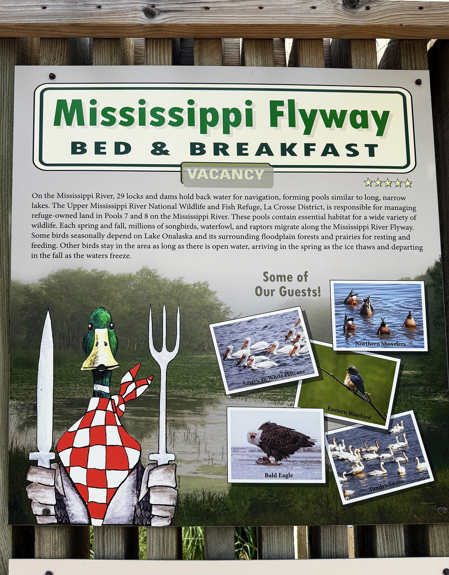 “You are standing at a rest stop on one of North America’s busiest highways, the Mississippi Flyway. The Mississippi River corridor is one of the most important migration and habitat corridors in North America.