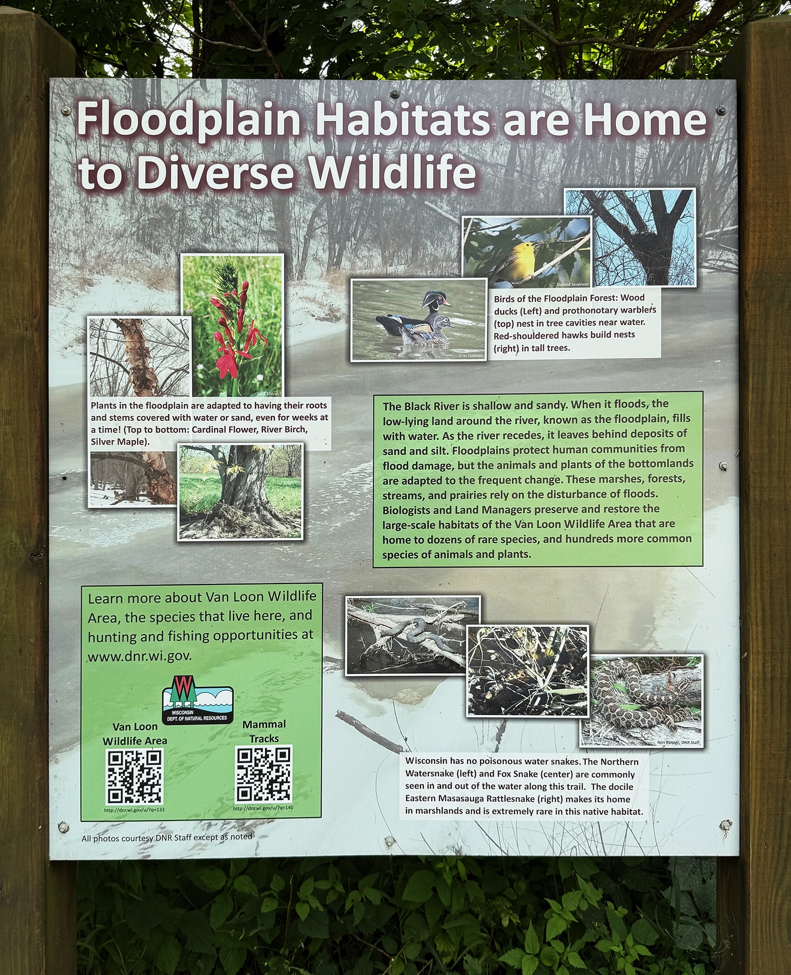 We continued north and found a nice parking lot with another lovely garden and park benches strategically placed for relaxing by the Black River. Eagle Watch is known for bald eagles (and also pelicans) during cold-weather months.