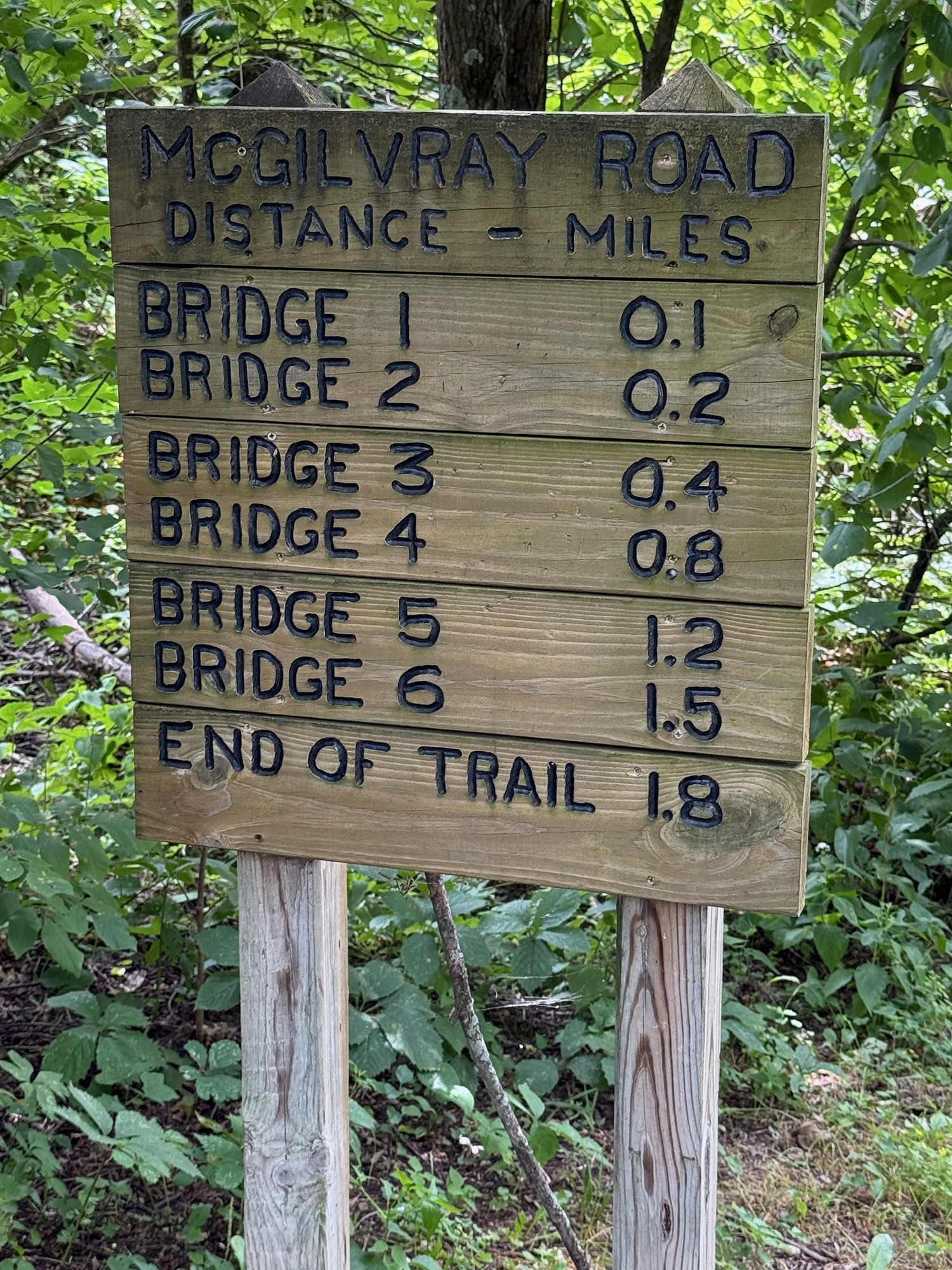 You can see the appeal of this walk from the quote above, right? We (I) decided a walk to seven bridges would be a great idea. I’ve come to love bridges of late, and the walk will do us good after another fantastic breakfast at the Blue Moon. A sign at the start of the trail indicated there were only six, and the website I quoted above said five, so right away it was more doable.