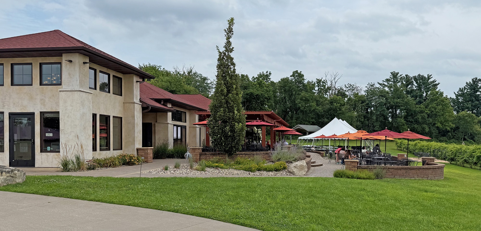 After our disappointing trek through the Van Loon “Wildlife” Area, we stopped at El Maro Vineyard – just five miles from our inn in Trempealeau. This was a beautiful place where we could taste a flight, then relax on the lovely patio at the edge of the vines! What a great way to end this long day. We made sure to buy a few bottles so we could be reminded of this beautiful day on the Great River Road. Cheers!