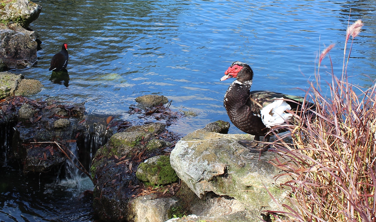 Two black swans were nesting in the landscaping. I felt a little like the paparazzi invading their privacy, but they weren’t too bothered by me. Unfortunately we weren’t able to see their eggs, but here is a beautiful video of four of the sweetest little black swan cygnets, who are actually a light grey color. March is probably a great month to see this place teeming with young families.
