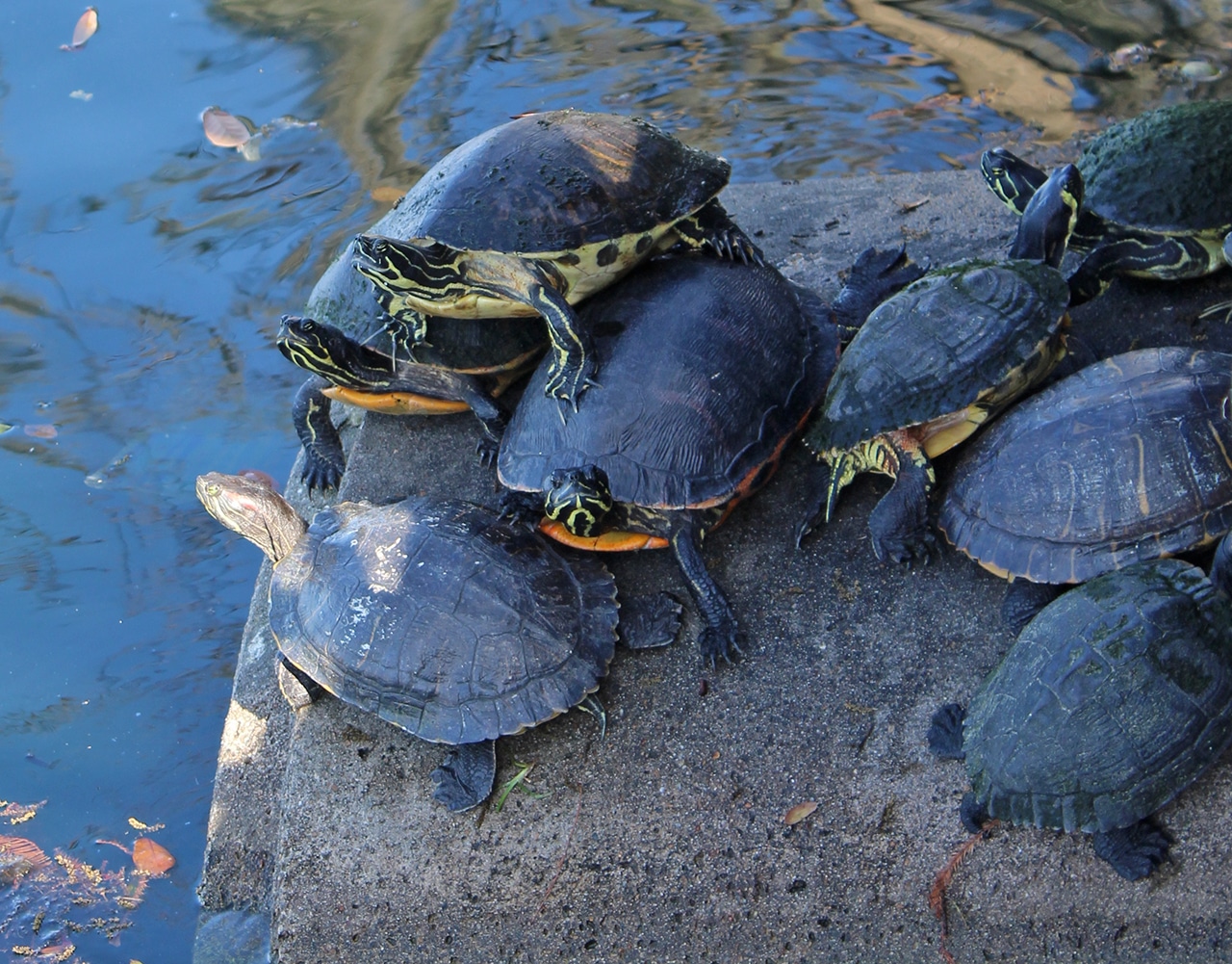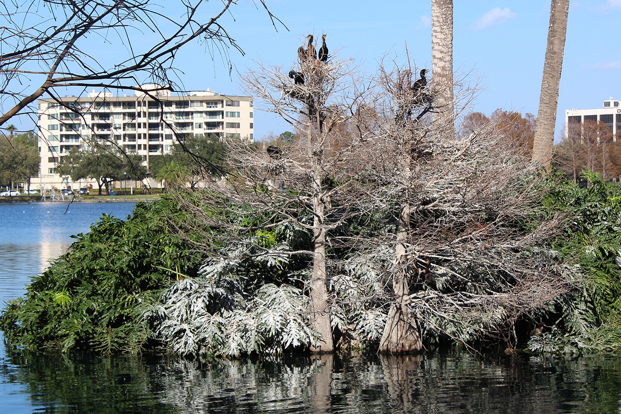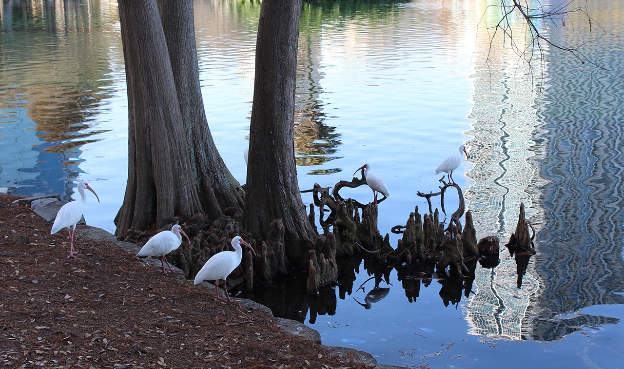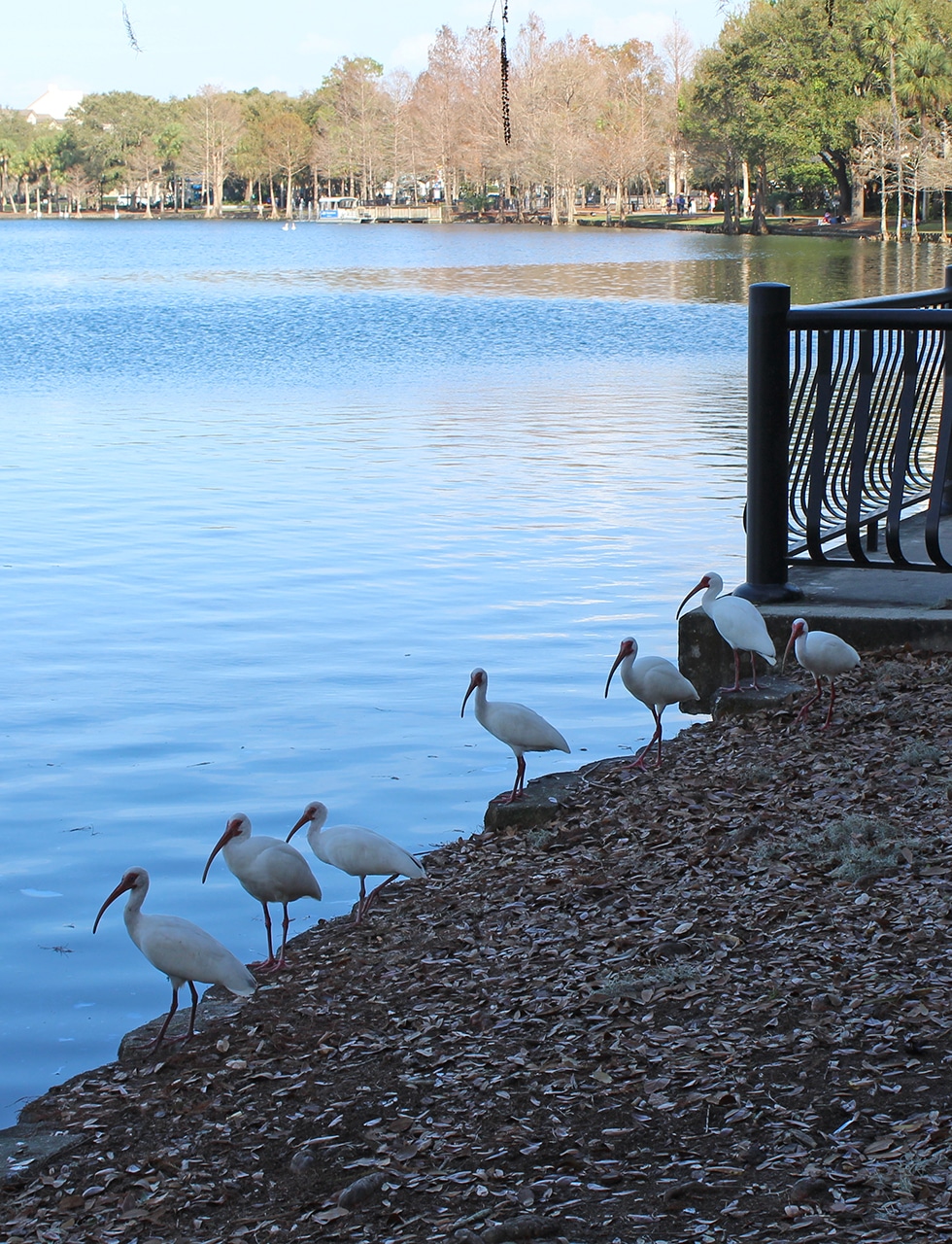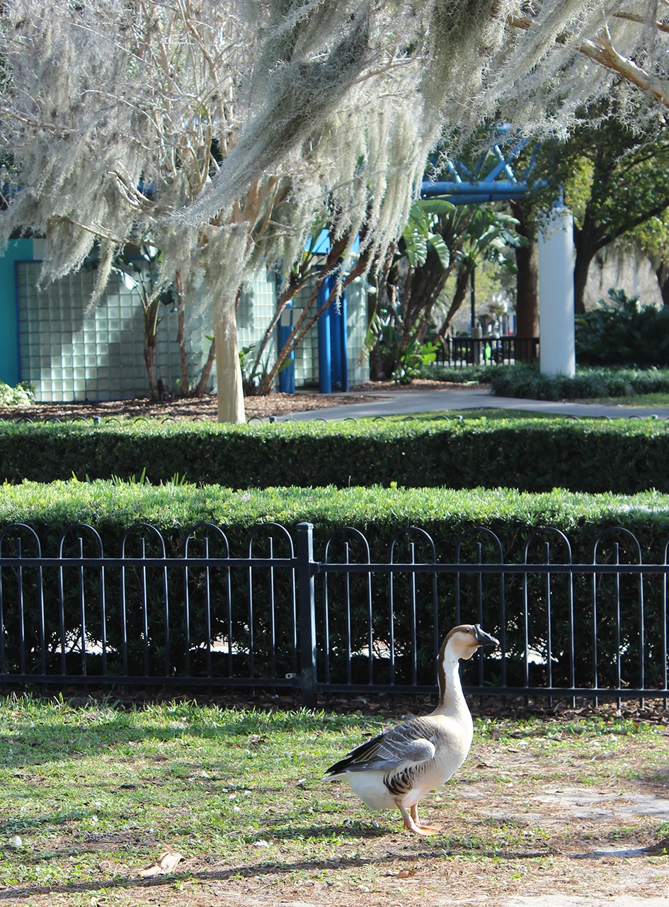 We strolled the sidewalk that encircles the lake for almost a mile, and really enjoyed its many interesting features. Although mid-February is a tad early for the beautiful flower gardens that it usually boasts, we loved the birds, turtles, water-features and even the Orlando skyline.