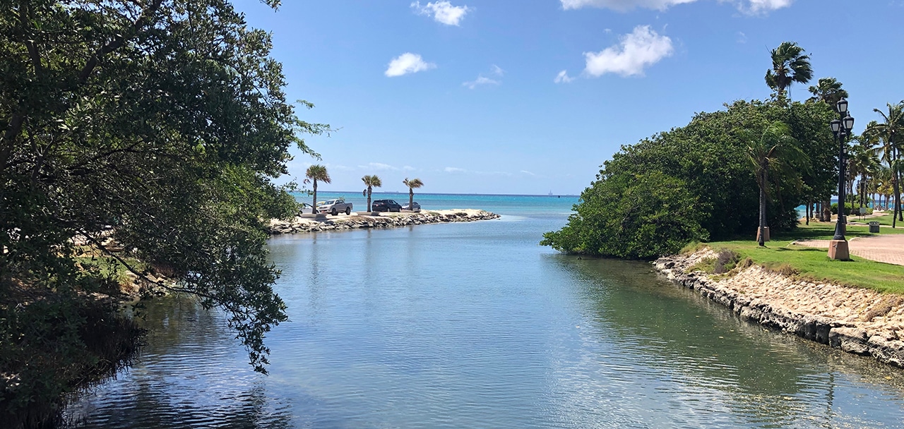 We continue our walk and cross the street to a park with two statues of historic women and the Caribbean Sea as its backdrop.