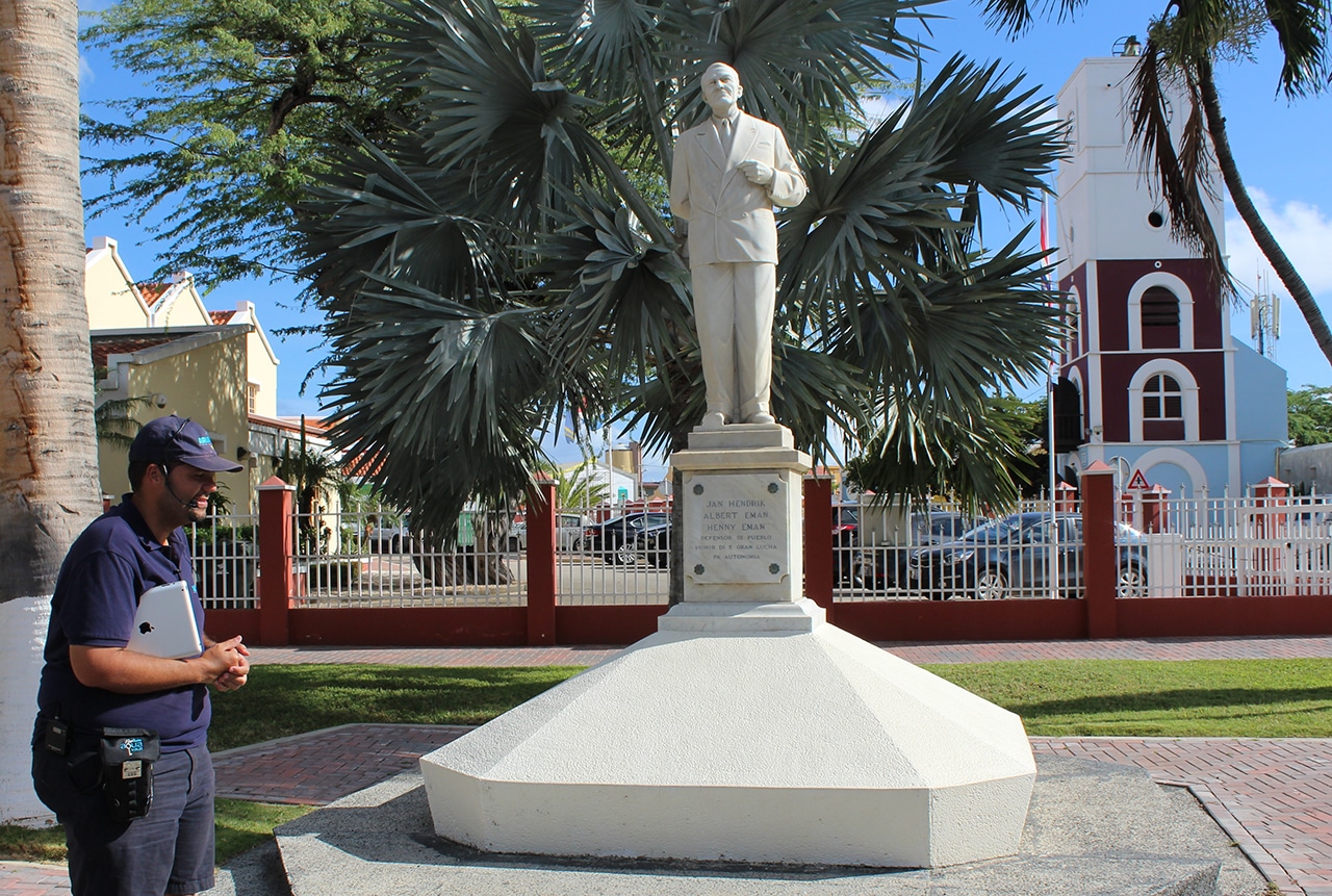 Just past the Parliament Building is a statue of Jan Hendrik Albert Eman (below). “Henny” was pivotal in the 1986 event where Aruba obtained its separation status within the Dutch Kingdom. With that event, the Island Territory of Aruba changed to the Country of Aruba, and Henny became its first Prime Minister. Fort Zoutman can be seen in the background, just to the right of his statue.