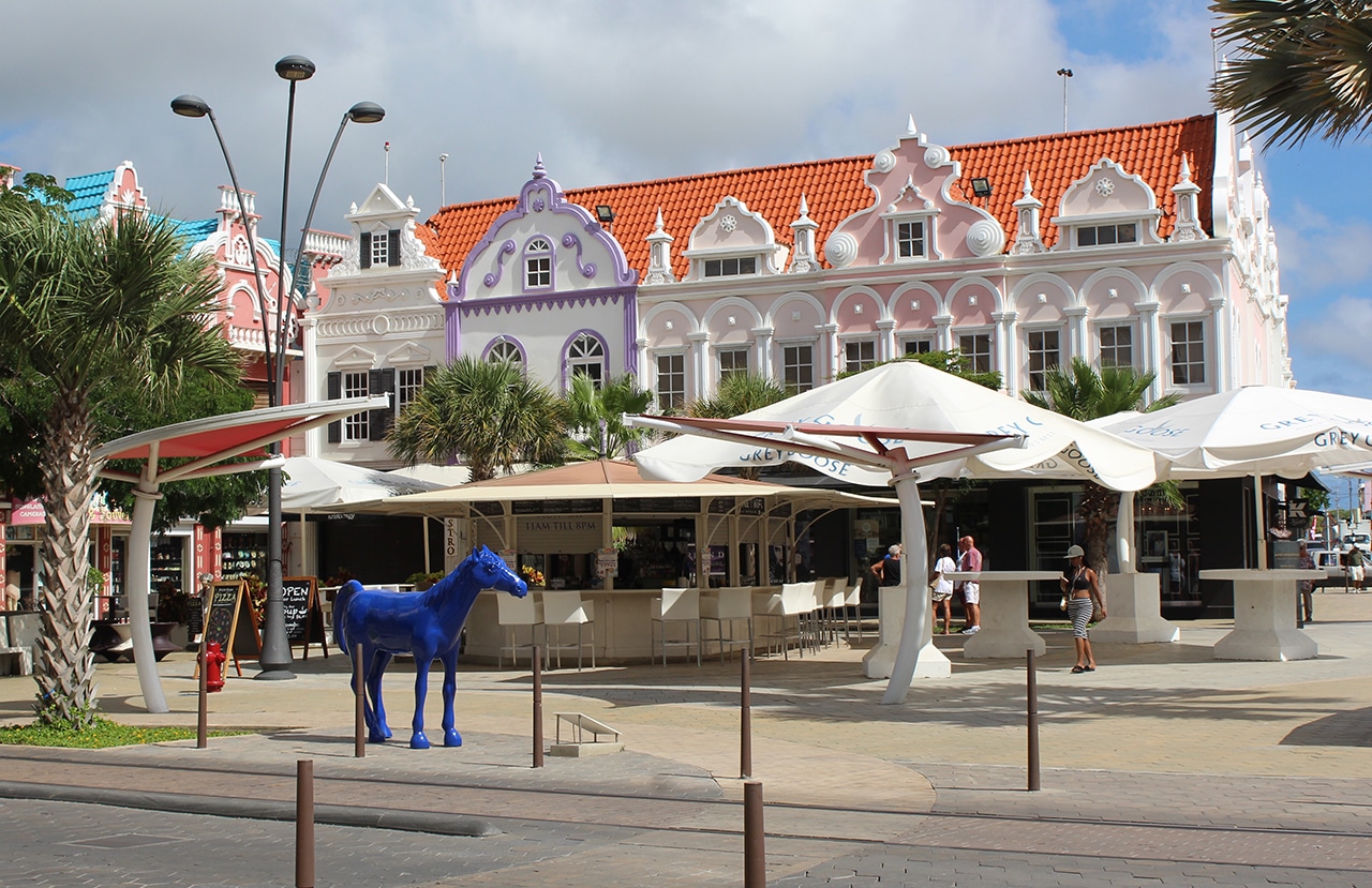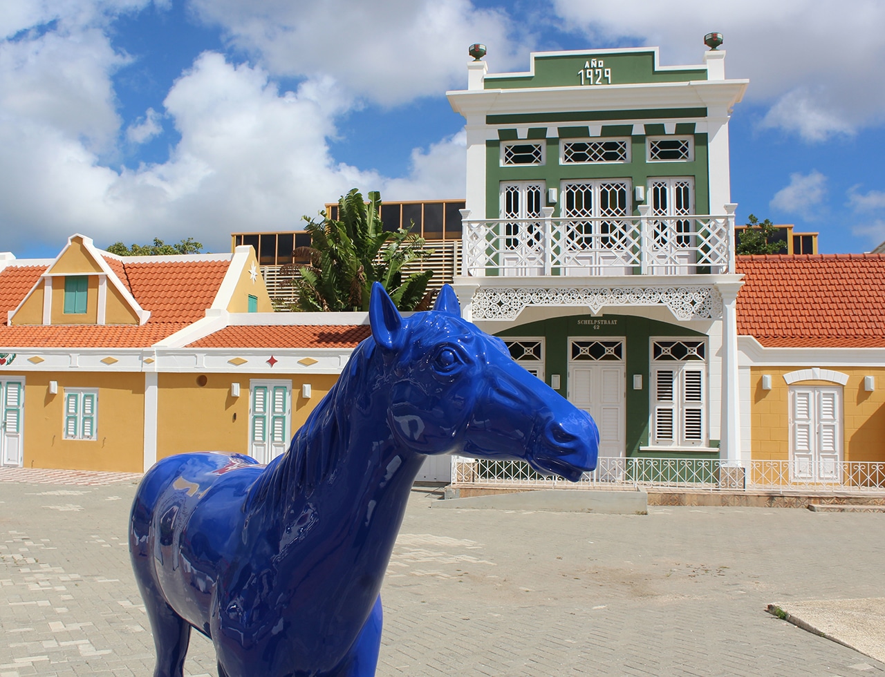 Between the colorfully restored landmarks and other artwork along the way, Oranjestad is really a beautiful town to explore on foot. The National Archaeological Museum of Aruba is one of many museums, and is located in the green portion of the building behind the blue horse.