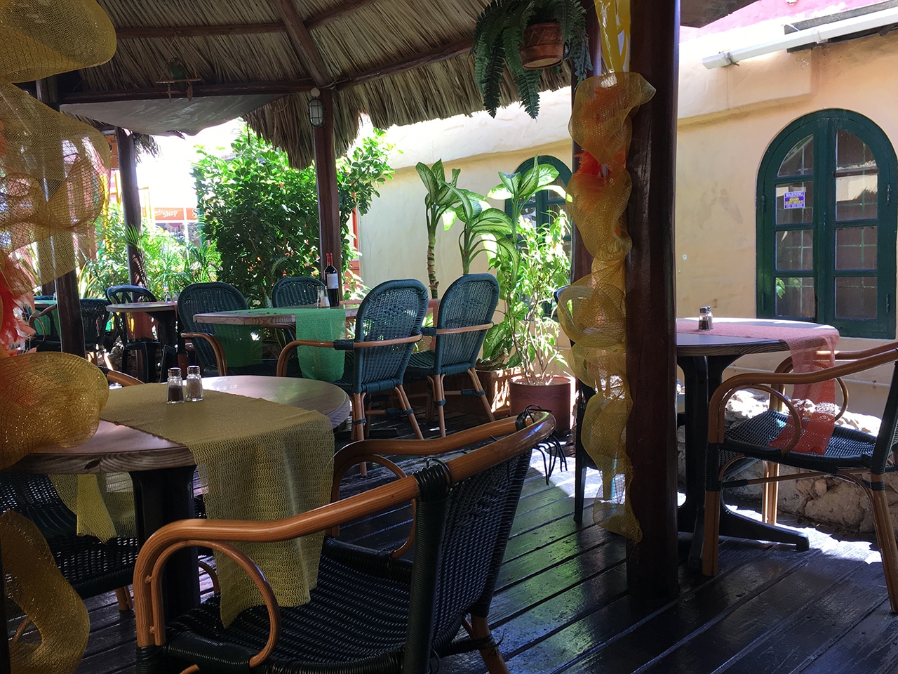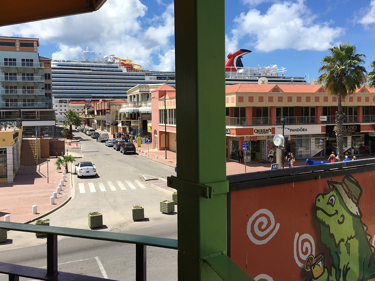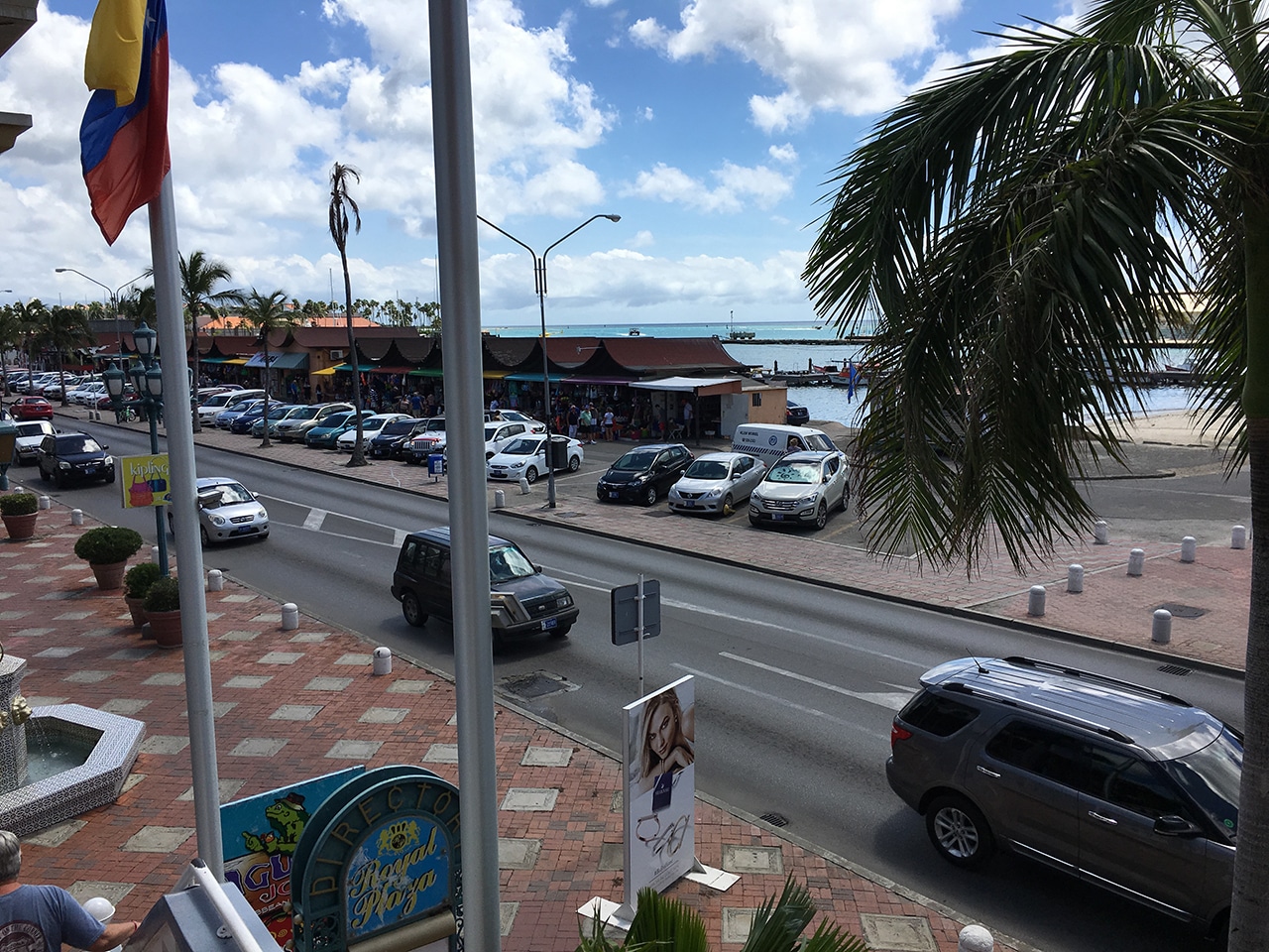 The bus ride to the city takes a while with many stops to pick up and drop off passengers along the way. Its air conditioning feels pretty good – especially after a day of walking in the hot sun. Since we didn’t have a pool or a sea to plop into whenever we overheated like we did at La Cabana, several times during our visits to Oranjestad we had to seek out shade and hydration – either by enjoying a great meal or just a beverage under cover in a cross breeze of the trade winds.