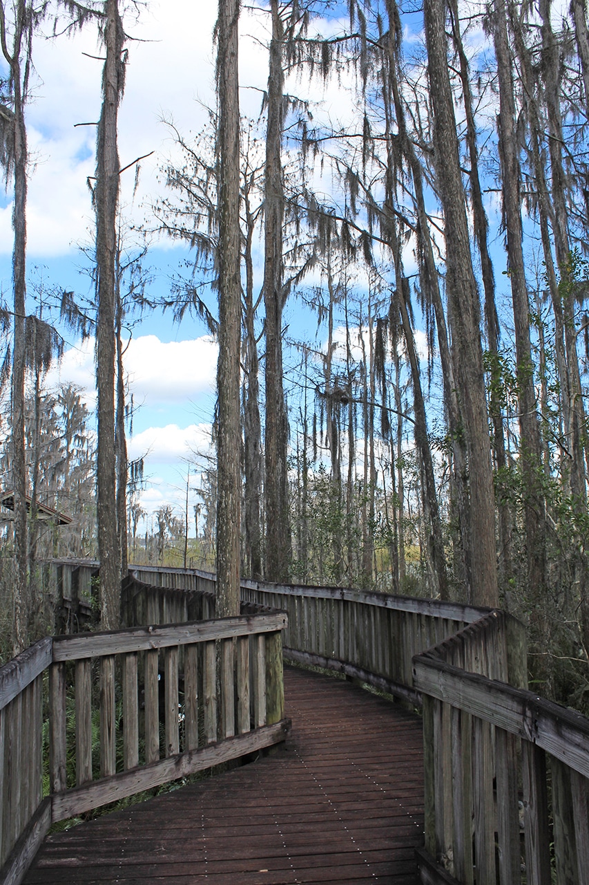 A very nice Visitor Center was full of information about the area and had an enclosure for this big ole snapping turtle. Good thing he was awesome, because he was our only wildlife for the day – although technically not wild. The trail was muddy and narrow (and a little creepy) with the standard “Beware of Gators” signs posted at the entrance. It was not nearly as relaxing as previous nature walks because of the brush that was very close to our legs. Chomp chomp.