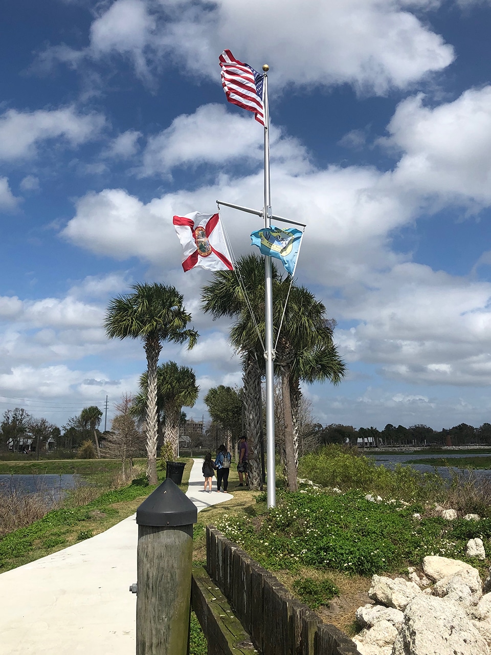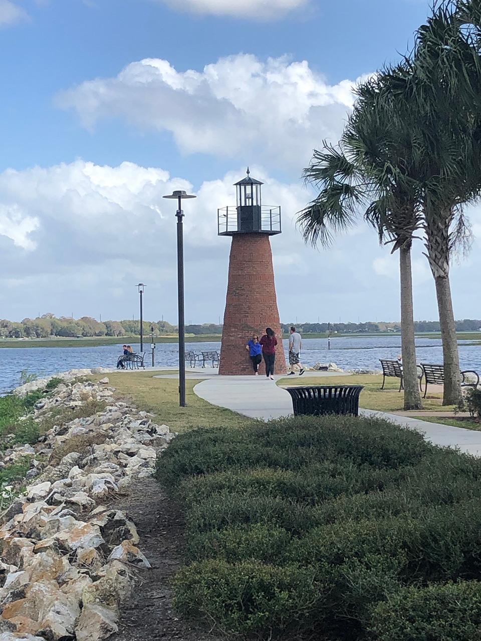 The marina area was quite beautiful and even though there was a stiff wind and the clouds rolled in and out, the sun was warm and the sky was a beautiful blue. The park has several pavilions with grills and picnic tables, playgrounds and plenty of sidewalks for some long walks. We saw signs to be on the lookout for alligators, but didn’t see any wildlife at all, except for a few more long-legged birds.