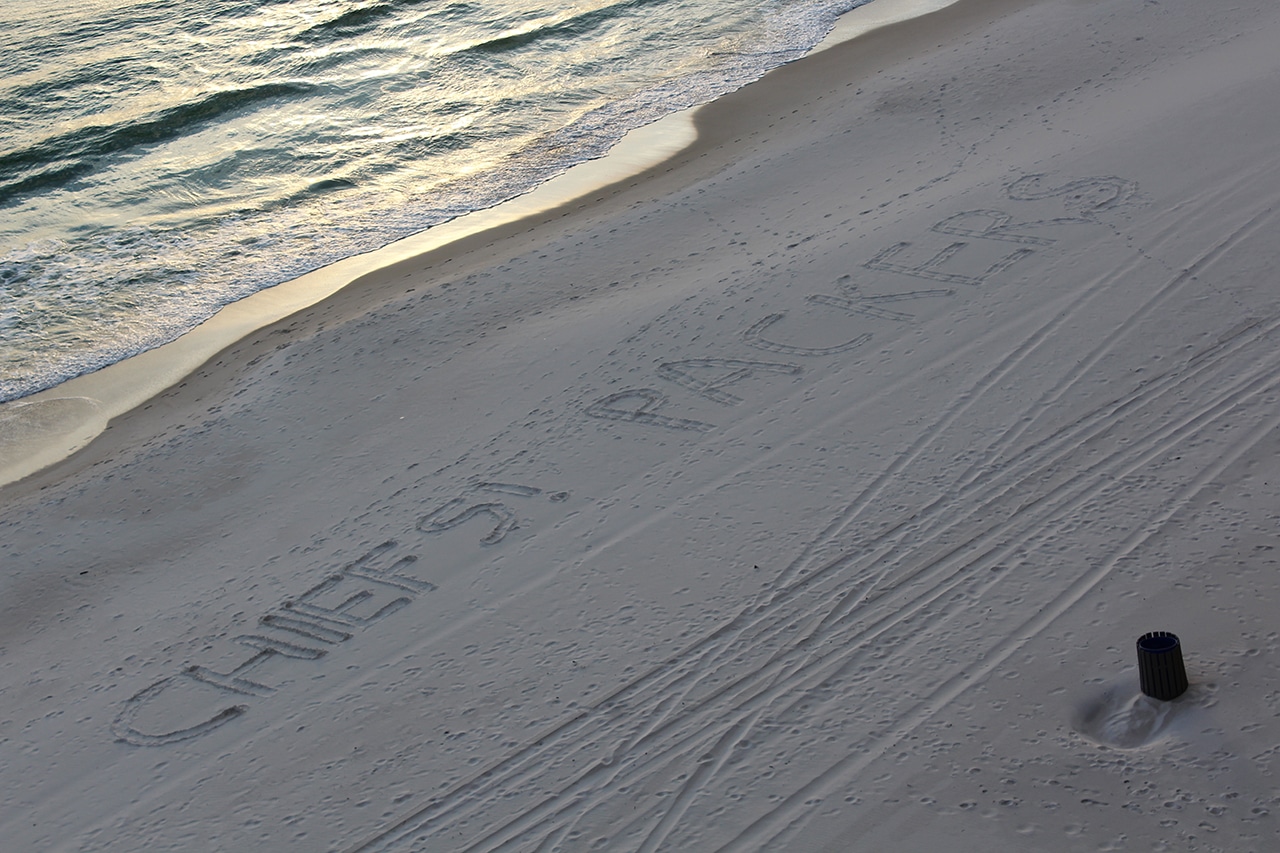 We arrived just in time to rush on over to Buffalo Wild Wings to watch the Green Bay Packers dash their Super Bowl dreams, so unfortunately the first photo below wasn’t a prediction as we had hoped. I suppose that was a lot to ask from a first-year coach, no matter how good-looking he is! The Landmark is the darker brown building on this end in the second photo.