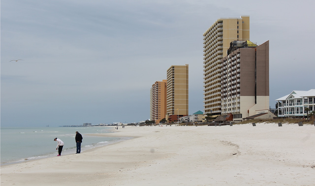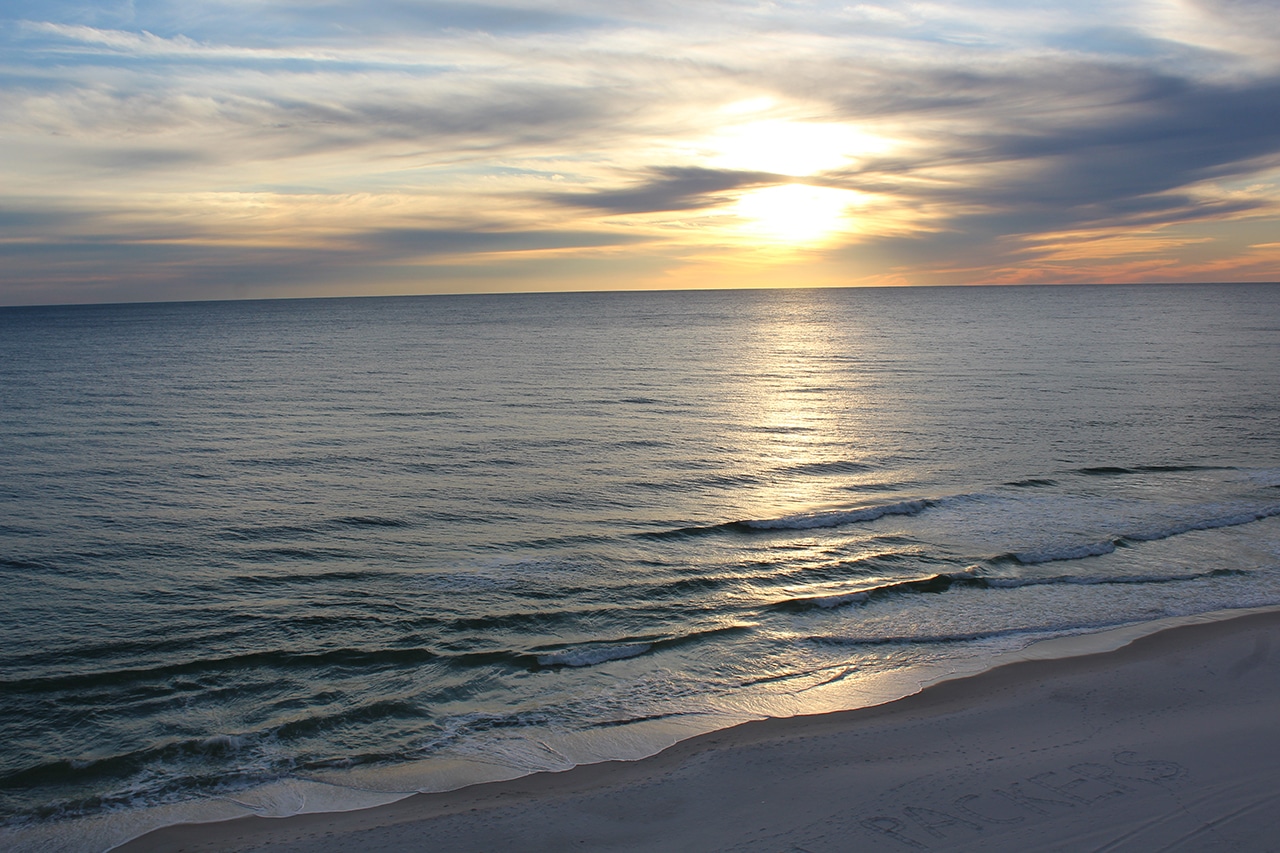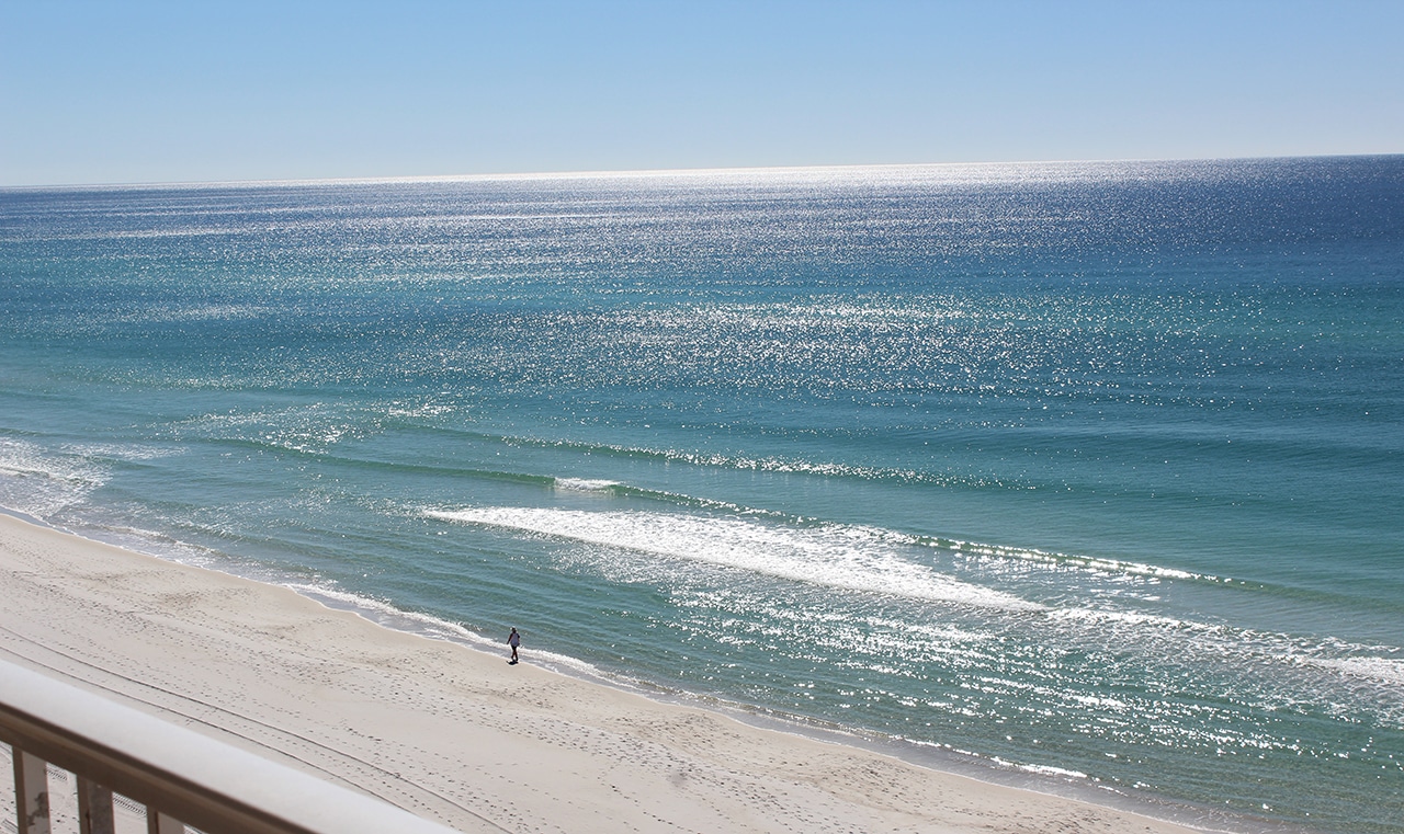 After a short visit with friends in South Carolina (hi Laurie!), we set up shop for two weeks in Panama City Beach (PCB). PCB is located on the Emerald Coast – the hundred-mile stretch of Florida along the Gulf of Mexico from Pensacola to Panama City. It was so interesting to see the different hues of “emerald” presented to us each day, depending on the sun, the wind and the surf.