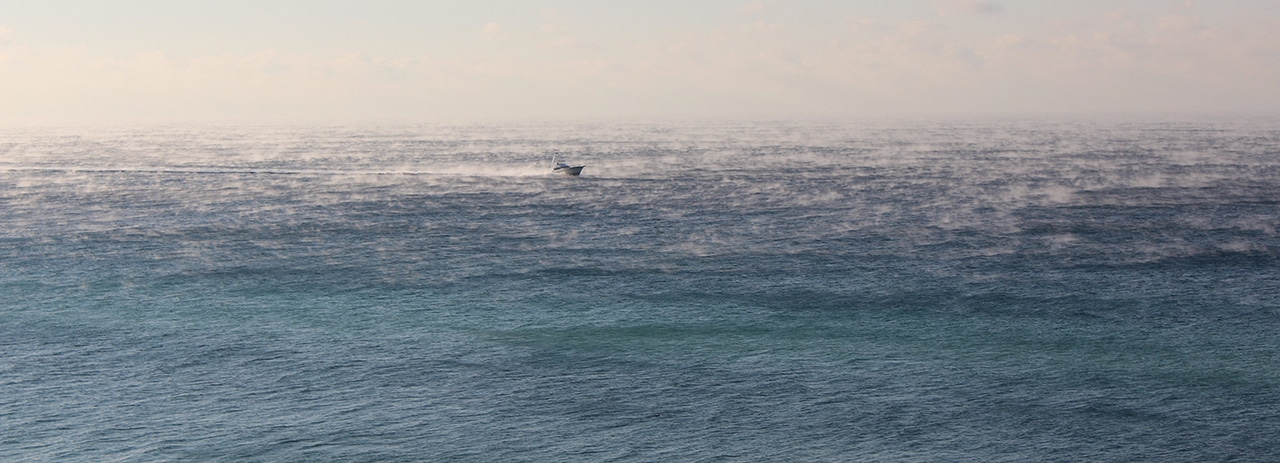 We unloaded in light rain and temps were in the forties. Although most-times twice the temperature of home, it was still pretty nippy, so we waited a few days before we got our feet wet in the gorgeous waters of the Gulf. The sound of the waves crashing is one of my favorite things about the beach and that would have to do for the first couple of days. One morning steam was rising from the warmer waters into this particularly cold morning air, which was pretty ominous.