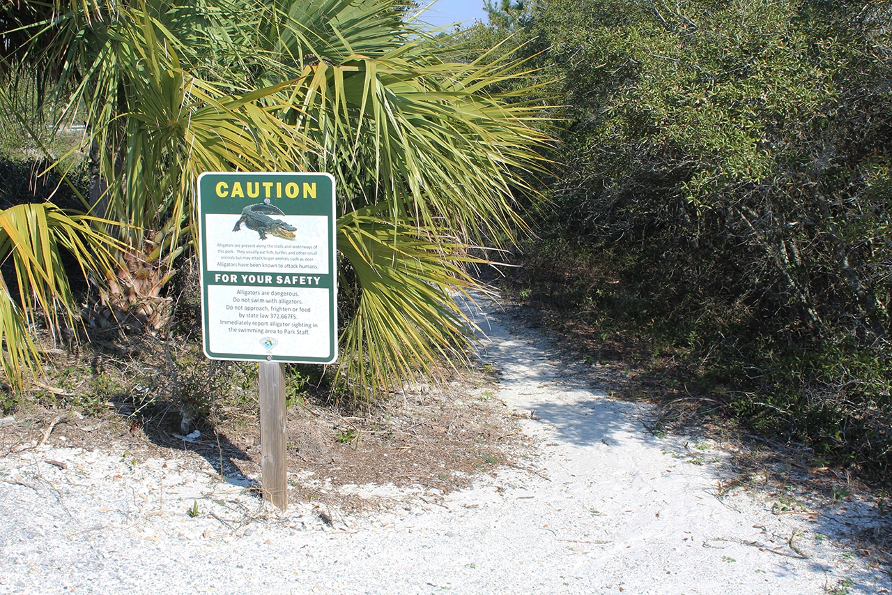 On our way back to the car, we noticed another area of the park that had some nice water views, so Jim navigated us over to it. Signs about gators were posted here – and pretty much everywhere in Florida. Since a significant portion of this state is boggy with tall grasses all around, who knows when they’ll show up, right?