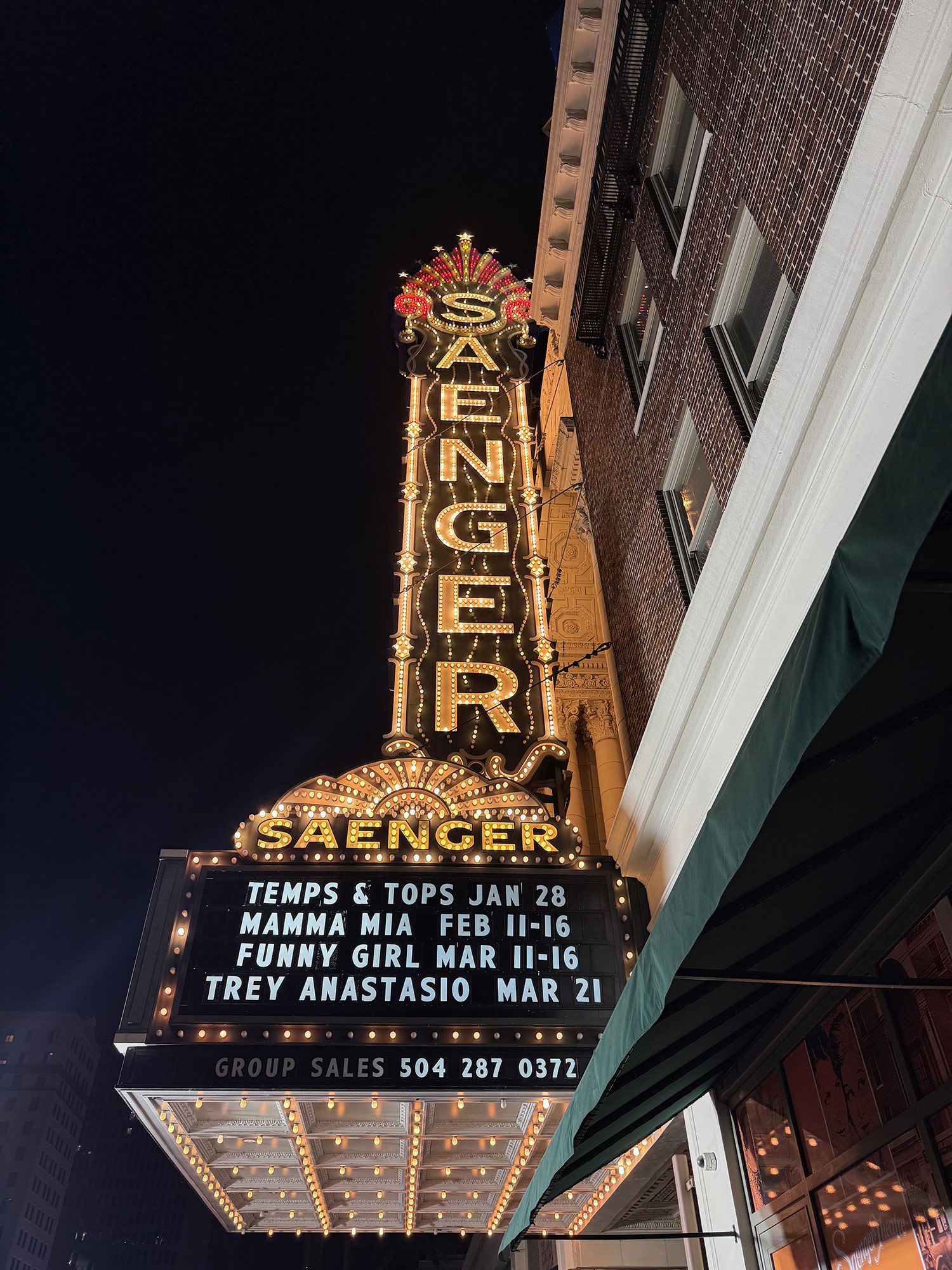 The header just above is the motto of the Musical Instrument Museum in Phoenix, which we visited on our last trip to Arizona in 2024. If you read my last post, we thoroughly enjoyed the Four Tops and Temptations at the Saenger Theatre just two nights ago. On a previous visit we boarded the Riverboat City of New Orleans for a lunch cruise and we loved tapping our feet to the live Dixieland trio while we passed by the banks of the Mississippi. And don’t forget our church music in Brattleboro, VT which was definitely a great evening! We have a good time – no matter the genre – especially if the music is live, and even more so in a historic venue.