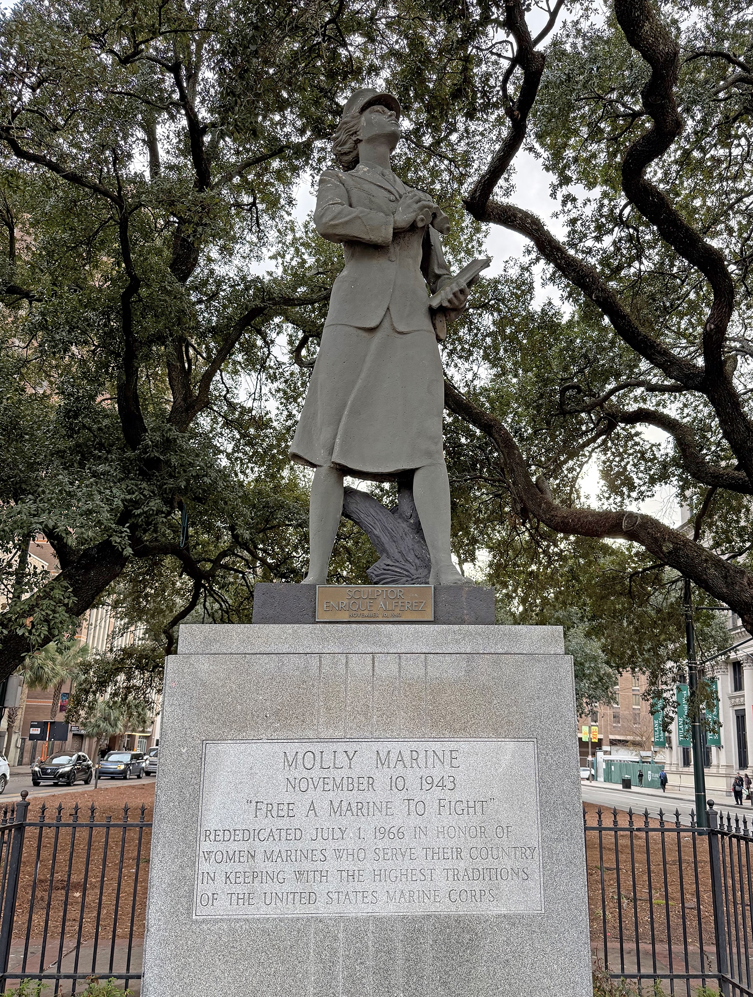 “Molly Marine was the first statue of a woman in uniform, and it was erected on Nov. 10, 1943 in New Orleans, La. This was the year the women’s reserve was activated as well as the 168th Marine Corps’ birthday…