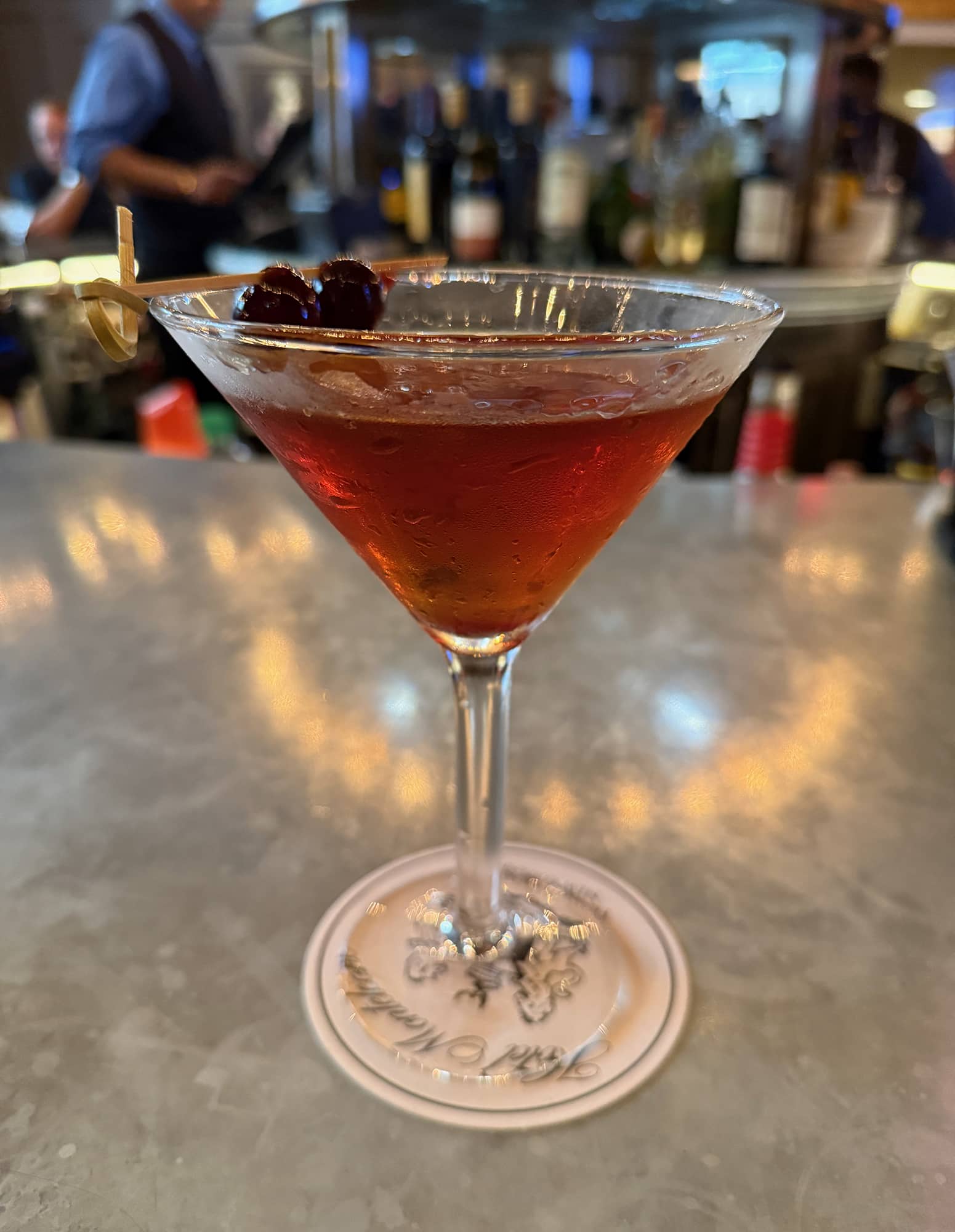 When the woman beside me ordered the beautiful cocktail pictured below, I just had to try one. Apparently the bartender had never heard of this concoction, but he will be putting it on the extensive list of beautiful (and very tasty) beverages served at this absolutely gorgeous hotel and bar.
