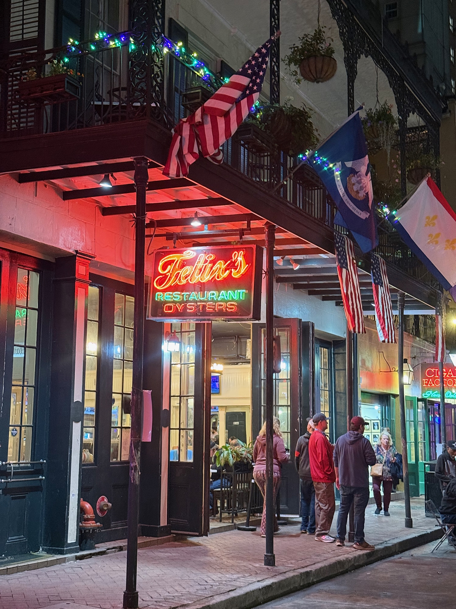 As we continued our tour of the French Quarter, we passed by several brightly colored shops on our way to dinner at Felix’s Oyster Bar & Seafood. It would have been nice to sit outside on their balcony for a nice view of the folks below, but it was pretty chilly (it was the end of January!) and I’m not sure if that is just for private events. Our food was very good, but it was not a relaxing meal, that’s for sure. When we order an appetizer and an entree, I like to enjoy one before the other – not at the same time. But that’s just me.