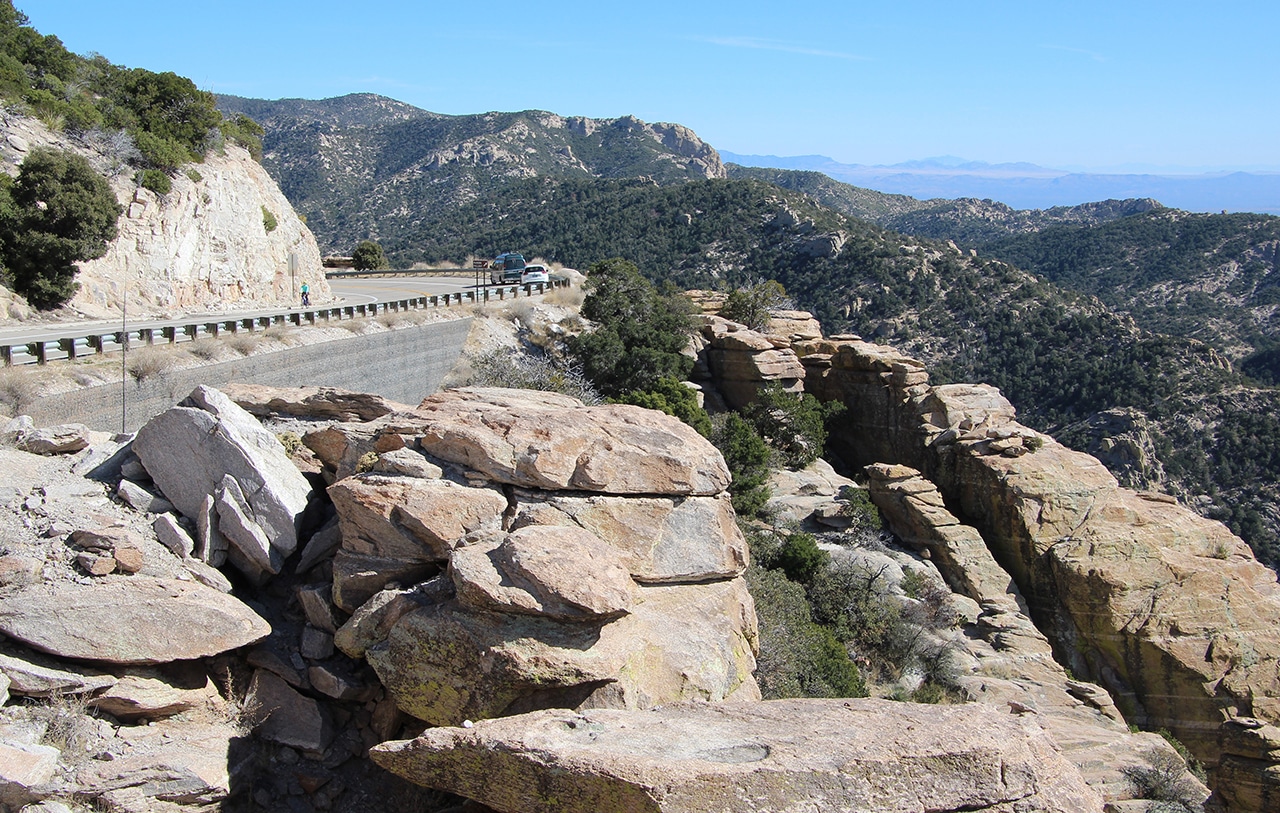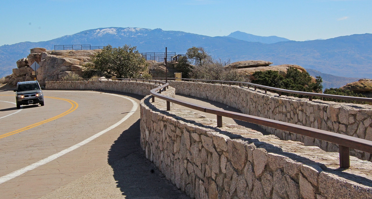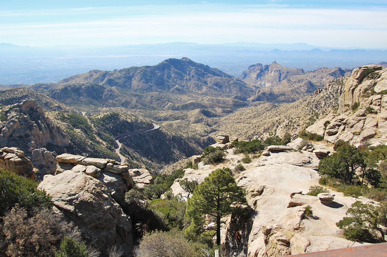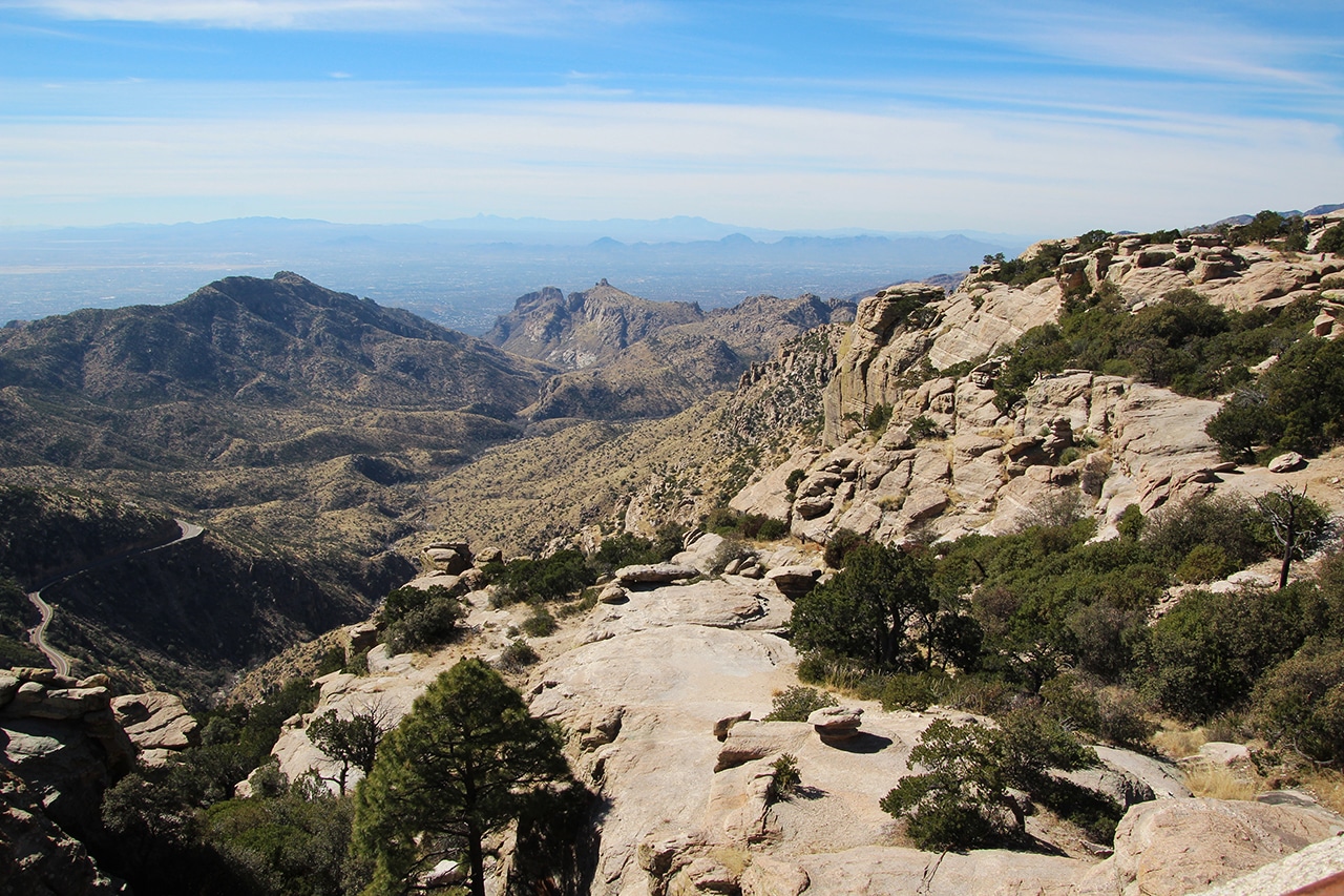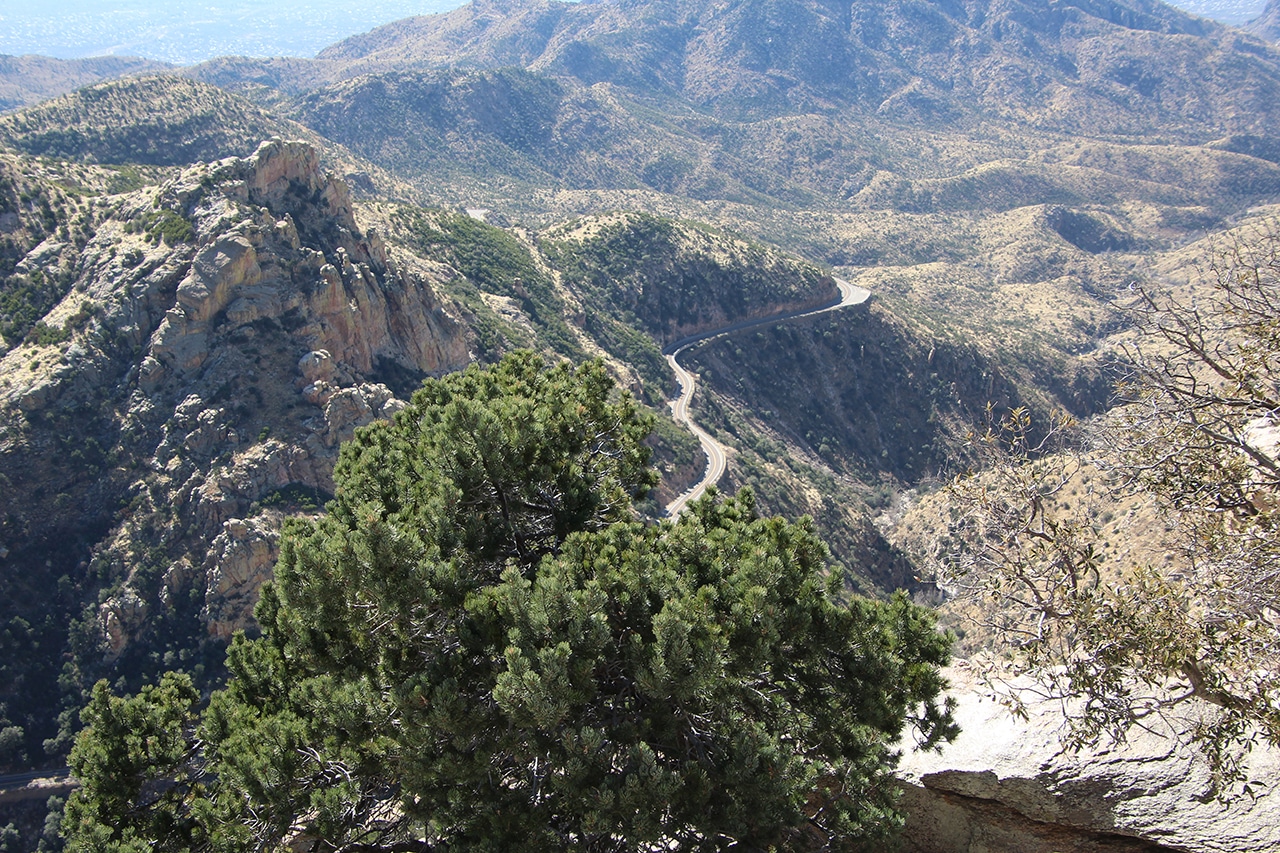 The first day of our Tucson week was spent on a drive to Mount Lemmon via the Catalina Highway. Recently designated as a US National Scenic Byway called Sky Island Parkway, this is a beautiful, curvy drive with plenty of pullouts to amazing overlooks. Because it could be thirty degrees cooler up top, it’s a great way to escape the heat of summer.