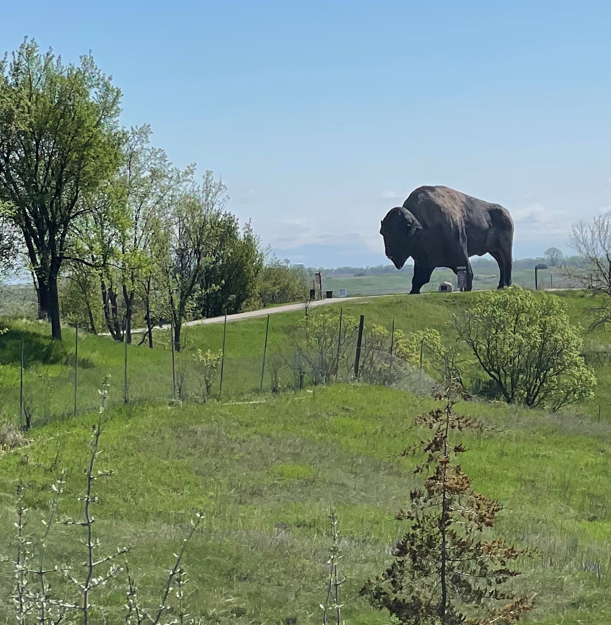 We barely had to leave the interstate to arrive at the end of Louis L’Amour Lane to catch a glimpse of the World’s Largest Buffalo Monument. Dakota Thunder weighs in at 60-tons, is 26-foot-tall, and is made of concrete. This buffalo has been standing watch over Jamestown, ND from the Frontier Village since 1959. There were quite a few things to do in the Village, where the buildings and their contents seemed very authentic. Since we were just passing through, we took a quick look and headed on down the road.